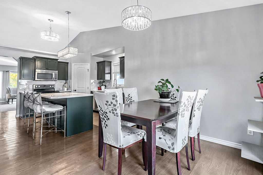 This gorgeous, FULLY DEVELOPED WALKOUT BUNGALOW sits on an expansive raised lot in a quiet location, offering PEACEFUL VIEWS of rolling hills and a treed farmer’s field. Built by the highly respected Woodmaster Homes, the property now features a newly completed walkout level developed by the builder, thoughtfully designed for comfort and versatility. The home welcomes you with a charming FRONT WOOD DECK, privately nestled and perfect for enjoying the tranquil natural setting across the street. Inside, you’ll find a spacious OPEN-CONCEPT living room with soaring VAULTED CEILINGS and LARGE WINDOWS that flood the space with natural light. The kitchen is a true highlight! Complete with STAINLESS-STEEL APPLIANCES, professional EPOXY COUNTERTOPS and BACKSPLASH, ISLAND SEATING, a CORNER PANTRY, and abundant NATURAL LIGHT. Adjacent, the dining area opens to a full UPPER DECK, ideal for outdoor entertaining. This home offers five spacious bedrooms and three full bathrooms. The master suite includes a WALK-IN CLOSET, PRIVATE ENSUITE, and enough room for a king-sized bed and dressers. Step out from the master bedroom onto a PRIVATE BALCONY, covered by a gazebo - your own serene retreat. Two additional bedrooms on the main level share a well-appointed 4pc bathroom. A convenient MAIN FLOOR LAUNDRY area adds to the home's functionality. The NEWLY FINISHED WALKOUT LEVEL is impressive, featuring two large bedrooms, each with WALK-IN CLOSETS, and a stylish 4pc bathroom with a DOUBLE VANITY. The family room is the heart of this level, showcasing a stunning WET BAR with a LIVE-EDGE WOOD COUNTERTOP, OPEN SHELVING, SOFT-CLOSE CABINETRY and a BAR FRIDGE - perfect for entertaining. Step out to the LOWER WOOD PATIO, built with 4x6 joists and screw piles, ready to support a hot tub (wiring already in place). Current owner pulled permits for a legal basement suite which would offer great flexibility. The furnace has dual temperature zones (main and lower level) for added comfort and efficiency. A newly constructed wood stairway along the side of the home provides easy access to the front yard. The property also includes a DOUBLE ATTACHED GARAGE and an EXTENDED DRIVEWAY, ideal for EXTRA PARKING. With LOW-MAINTENANCE LANDSCAPING, this home is perfect for both large families and empty nesters seeking move-in-ready convenience. Every detail has been completed - simply move in and enjoy the lifestyle!