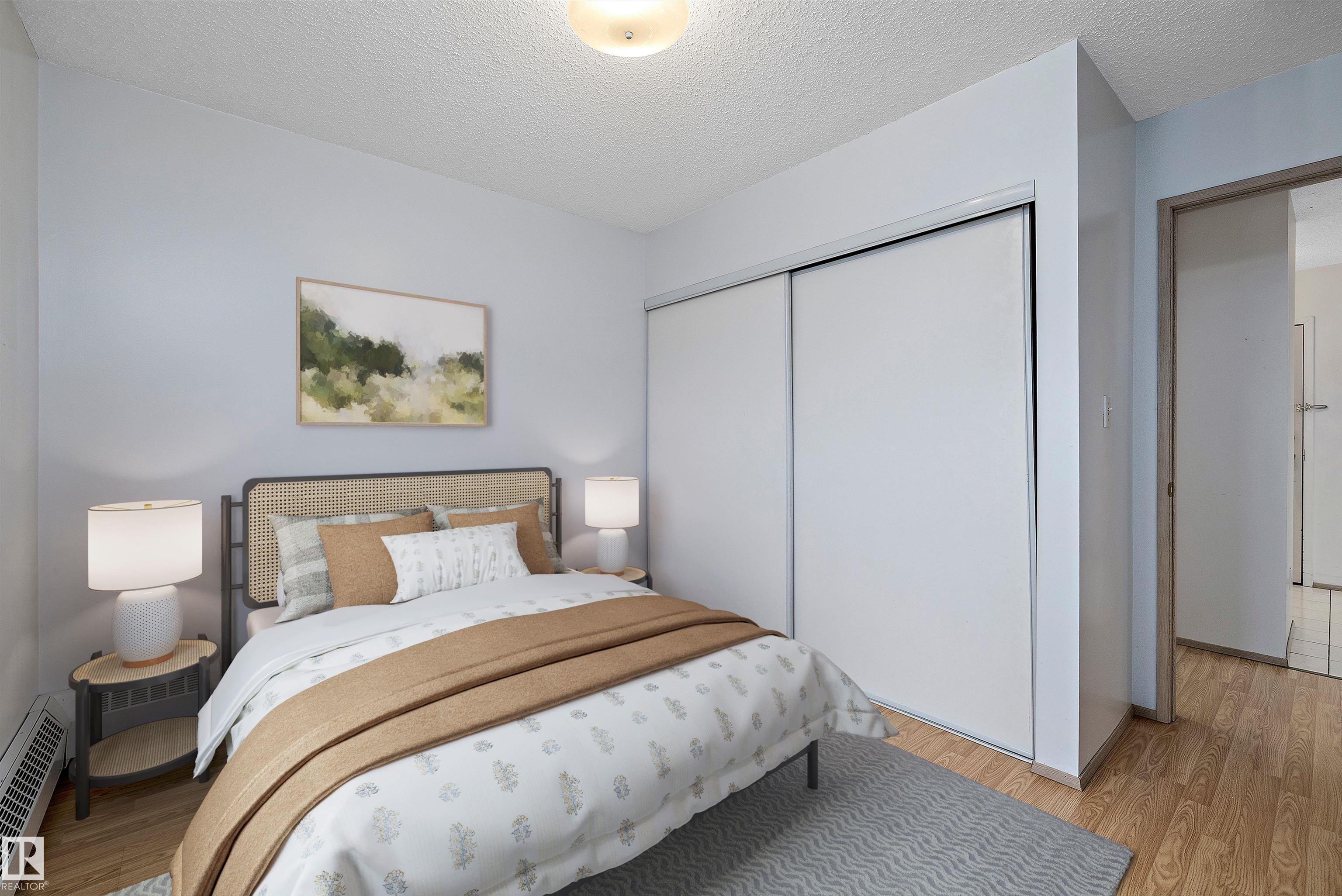 Discover top-floor living in this bright and airy 2-bedroom, 2-bath condo, lovingly maintained by its original owner. Bathed in natural light with a sunny west-facing exposure, this home welcomes you with warm neutral tones, upgraded laminate flooring, and sleek ceramic tile. The galley-style kitchen is both stylish and functional, featuring stainless steel appliances that complement the open dining and living area. Step onto the large private balcony to enjoy evening sunsets or morning coffee in peace. Both bedrooms are generously sized, with the primary offering a full ensuite and walkthrough closet for added convenience. Low condo fees—including heat and water—make ownership easy, while the unbeatable location puts you within walking distance to Grey Nuns Hospital, Mill Woods Rec Centre, the Transit Centre, and nearby parks. A rare top-floor gem with modern touches and everyday practicality—this is the condo you’ve been waiting for! Some images are virtually staged.