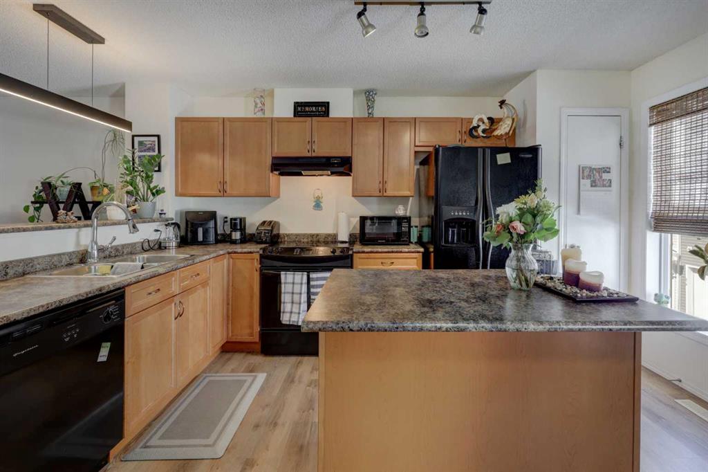 Life in Tuscany begins with a setting that connects everyday convenience with a welcoming community atmosphere. Thoughtful updates and a well-planned layout come together in this move-in ready 3 bedroom, 2.5 bathroom townhome designed to support both daily routines and relaxed downtime. Updated luxury vinyl plank flooring flows throughout the main level, creating a cohesive backdrop for an open-concept design that encourages connection. Gather in the living room where generous space and modern lighting with a fan enhance comfort while keeping the area bright and inviting. Meal preparation feels intuitive in the kitchen, where a centre prep island pairs with a peninsula offering breakfast bar seating, allowing conversations to continue while cooking. Dining takes place just steps away, maintaining easy flow without sacrificing definition between spaces. Tucked discreetly off the main area, a powder room adds everyday convenience without interrupting the layout. Upstairs, a primary retreat introduces a private 3-piece ensuite that eliminates the need to share, along with a walk-in closet that keeps everything organized and accessible. Two additional bedrooms create flexibility for family, guests or a home office, while a full 4-piece bathroom completes the upper level. Downstairs, laundry and ample storage keep seasonal items and extras neatly out of sight. Outdoor living extends to a charming front patio with sunny south exposure, enjoy entertaining family and friends while basking in the sun, where low-maintenance landscaping and a quaint white picket fence create a welcoming place to unwind. Mature trees and green space between neighbors allows for privacy and shade. Parking remains simple with a double attached garage at the rear, while the beautifully maintained complex adds to the overall sense of pride and care with its tranquil courtyard spaces. Daily life becomes even more convenient thanks to a location within walking distance to the Tuscany Club, schools, parks, transit and the Tuscany Market featuring Sobey’s, Starbucks and a variety of shops and services. Access to 12 Mile Coulee, off-leash areas, Lynx Ridge Golf Course and the Tuscany LRT station further enhances the lifestyle, while quick connections to Stoney Trail and Crowchild Trail make commuting straightforward.