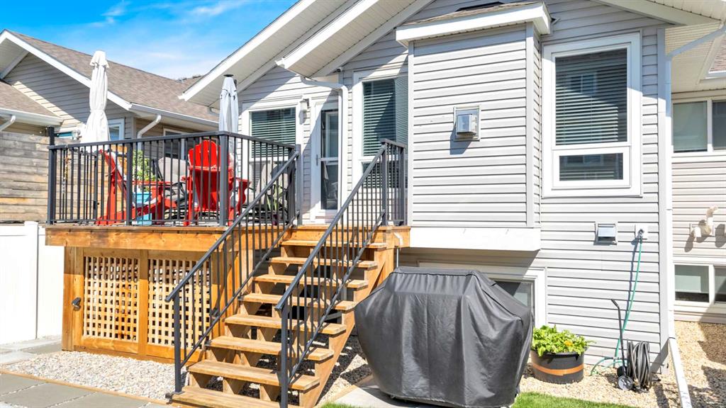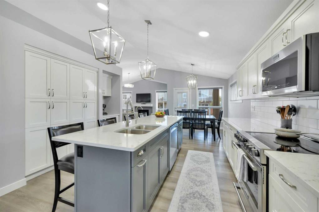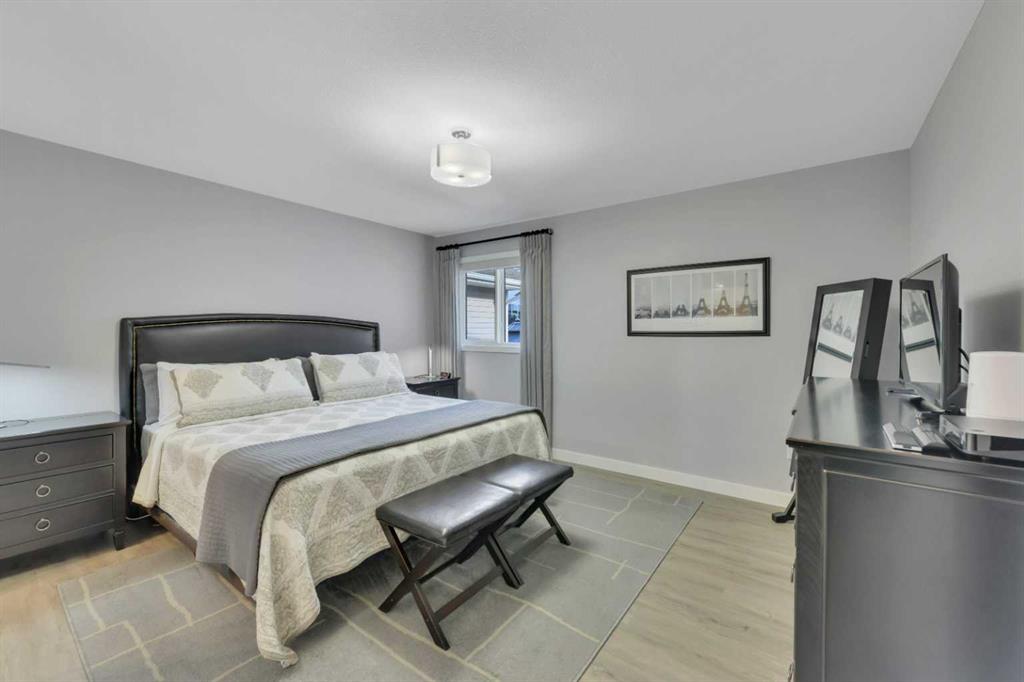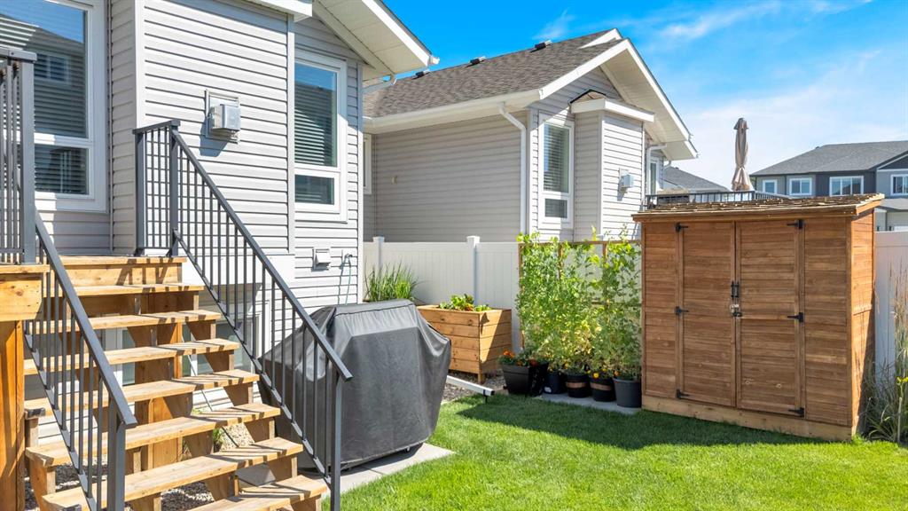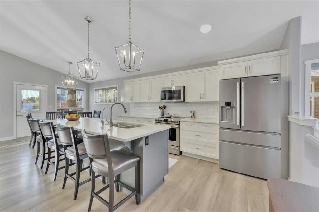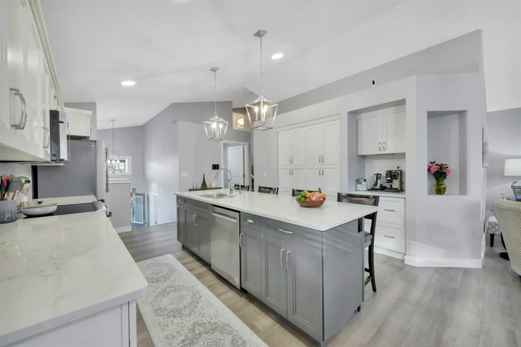 32 Cameron Close in Sylvan Lake is a stunning 5-bedroom, 3-bath modified bi-level designed for modern living in a quiet, desirable neighborhood. From the moment you step inside, you'll appreciate the bright, open-concept layout that showcases vaulted ceilings, fresh paint, and vinyl plank flooring throughout the main living areas. Natural light pours into the spacious living room, where a cozy gas fireplace with an updated surround creates a warm, inviting space for family and guests. The kitchen is a true standout – designed with function and style in mind. Enjoy quartz countertops, a large central island, updated lighting and hardware, custom pantry, and a sleek coffee bar. New high-end appliances (with extended warranty), pull-out cutting board cabinet, and thoughtful finishes make this kitchen a dream for home cooks and entertainers alike. The main floor features a generously sized primary suite complete with a walk-in closet featuring custom built-ins and a luxurious ensuite. Two more bedrooms are located on the upper level, while the finished basement offers a spacious family room, 2 additional bedrooms perfect for a home office, gym, or playroom. All three bathrooms have been beautifully updated with quartz counters and contemporary finishes. Added convenience comes with main floor laundry and plenty of storage throughout. Step outside to a fully fenced and professionally landscaped backyard – complete with a 3x7 cedar shed, and French drain with weeping tile pulling water away from the property for peace of mind. The large double attached garage is equipped with floor drains and a newly updated man door for added functionality. Significant upgrades throughout the home include a new central A/C unit and in-floor heat for year-round comfort, new front and back entry doors, and a suite of premium mechanical enhancements — including a HEPA air filtration system, water softener, and water filtration system. Located just steps from walking trails and within walking distance to schools and parks, this property offers a rare combination of style, function, and location. Every detail has been carefully curated for comfort, style, and convenience. Don’t miss your chance to own this exceptional property.