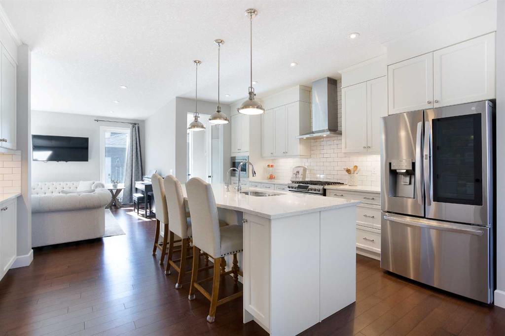 Discover over 2,500 square feet of beautifully designed living space in this modern two-storey home, ideally located on a quiet street just steps from parks and green space. With thoughtful upgrades and an open-concept layout, this property offers both style and functionality for today’s lifestyle. The chef-inspired kitchen is the heart of the home, complete with quartz countertops, abundant cabinetry, a gas range, and newer high-end appliances. The seamless flow between the kitchen, dining, and living areas creates an inviting environment for entertaining or everyday family living. Upstairs, three spacious bedrooms and two full bathrooms provide comfort and flexibility, while the finished basement extends your options with a full bathroom, entertainment area, and an additional massive bedroom that can easily double as a fitness room or private office. Set on a desirable pie-shaped lot, the backyard offers plenty of space along with extra parking for your RV. A large detached garage adds further convenience. Recent upgrades — including a high-efficiency furnace (2023) and hot water tank (2025) — ensure peace of mind for years to come. New garage roof, garage door and gutters (2025). New house roof (half 2025), under the solar panels (half 2020). Solar panels installed in 2024. Close to amenities, the airport, and Stoney Trail, this exceptional property balances everyday practicality with modern sophistication.