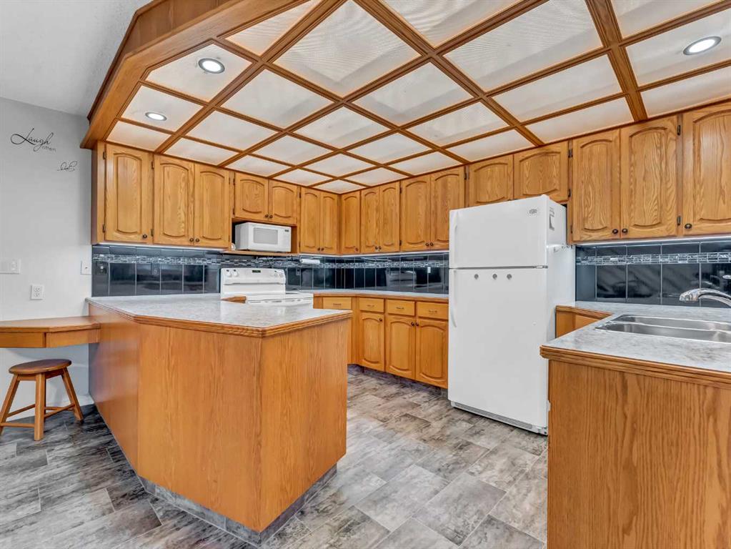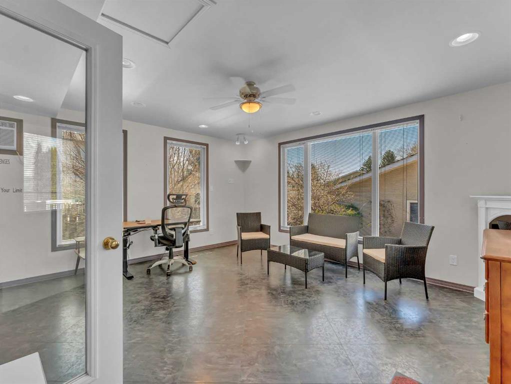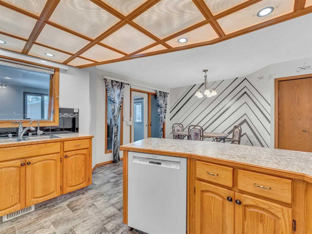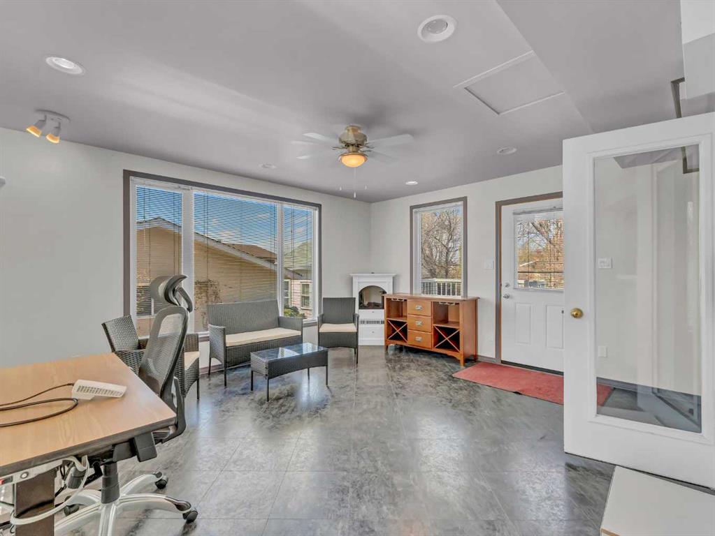 Welcome to a home that perfectly balances modern convenience with incredible versatility. Situated in a quiet, family-friendly neighborhood just steps from schools and shopping, this property greets you with newer laminate flooring and a bright, open feel. The main floor features a unique layout where one of the three bedrooms has been converted into a convenient laundry room; however, for those needing the extra bedroom, the laundry can easily be moved back to the basement. The primary suite offers the privacy of a dedicated ensuite, complemented by a spacious four-piece main bathroom for the rest of the household. One of the standout features of the main level is the attached sunroom addition, providing a peaceful space to enjoy the outdoors from the comfort of your home. The living space extends into the fully finished basement, where a cozy fireplace serves as the focal point for family movie nights or a quiet retreat. Outside, the property is a hobbyist's dream, featuring a low-maintenance yard that frees up your weekends. The backyard hosts a substantial double detached garage and a separate, insulated shed equipped with power. This bonus structure is a blank canvas, perfectly suited for a small home business, a dedicated "man cave," or an adorable playhouse. With its flexible floor plan and exceptional outdoor workspaces, this home is ready to adapt to whatever your lifestyle demands.