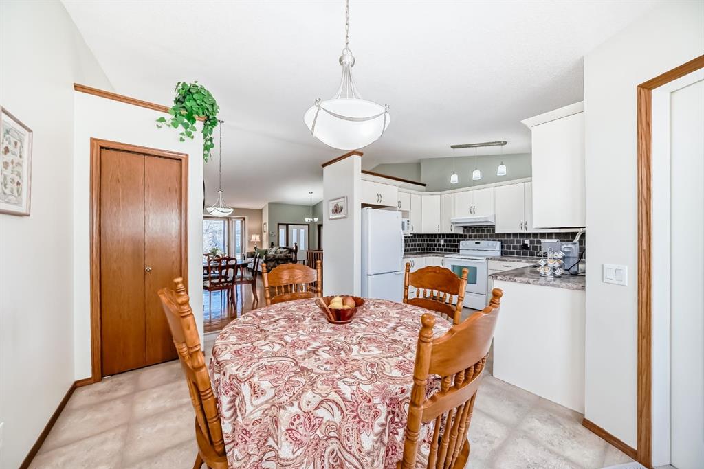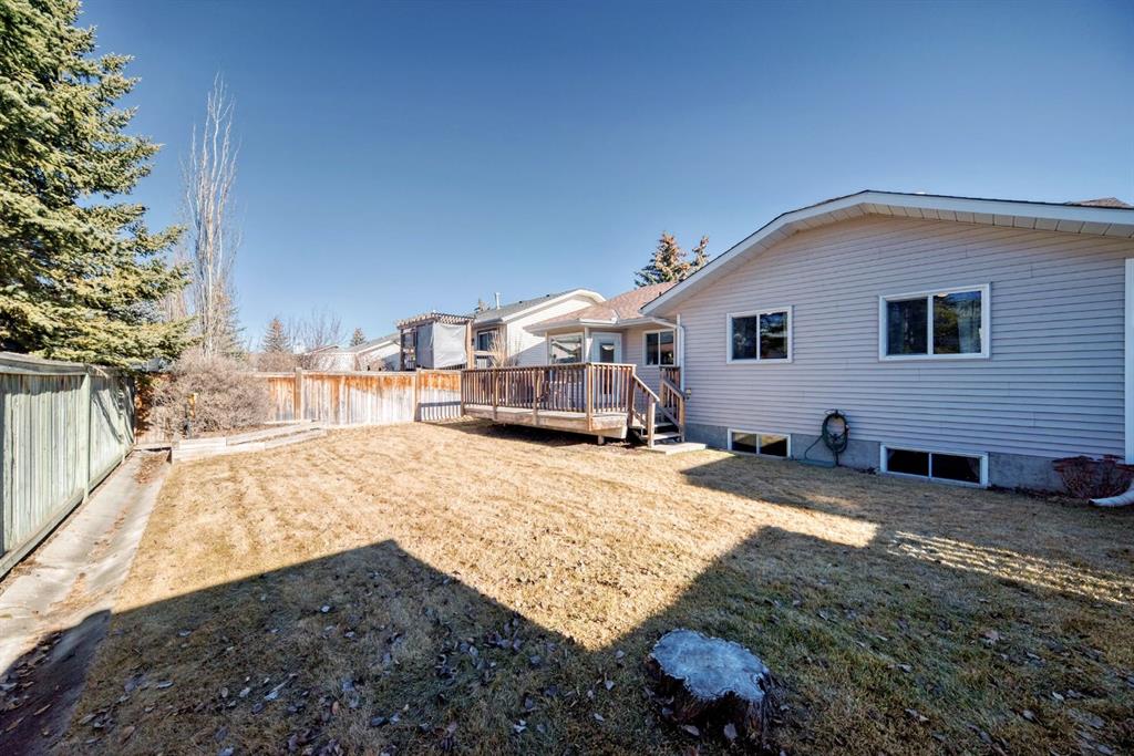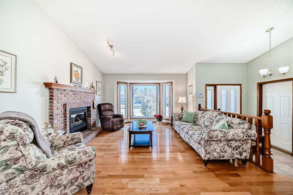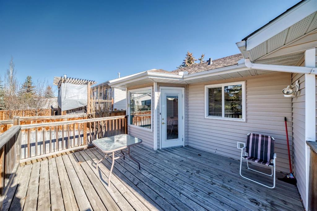 Welcome to 32 W Mackay Crescent, ideally located within walking and biking distance to everything Cochrane has to offer, restaurants, shops, schools and the beautiful Bow River pathways. Offered for the first time, this lovingly maintained bungalow was built in 1991 by the original owner and has been exceptionally cared for ever since. The home features a spacious double attached garage and beautifully landscaped and fully fenced front yard and back yard with mature flower beds for great curb appeal. Inside, a bright open concept layout connects the front living room and dining area, highlighted by vaulted ceilings, updated windows that fill the space with natural light, and a cozy fireplace that creates the perfect gathering spot. The kitchen offers generous workspace, newer appliances, white and bright cabinetry and tile back splash with direct access to an extended deck ideal for summer BBQs. The main level also includes a spacious primary bedroom with two large closets and a 3 piece ensuite, a second bedroom, a 4 piece bathroom, and convenient upper-level laundry that could be converted back to a third bedroom if desired. The fully developed basement features a large family room, a third bedroom or office, and a sizeable mechanical room with ample storage. Additional updates include an irrigation system, roof replaced in 2017, newer upper-level vinyl windows, hardwood flooring in the upper bedrooms, updated tile in the bathrooms, hot water tank replaced in 2016, and an original furnace that has been professionally serviced and cleaned annually. No Poly B in home. Pride of ownership is evident throughout this exceptional home. Book a showing today, this one won't last long!