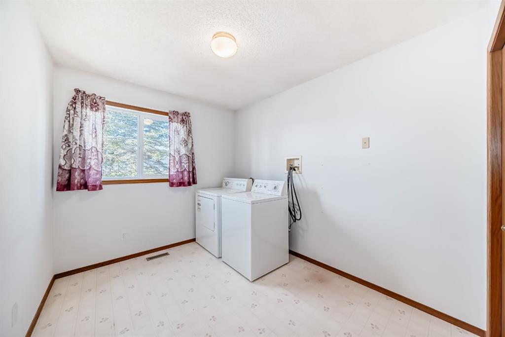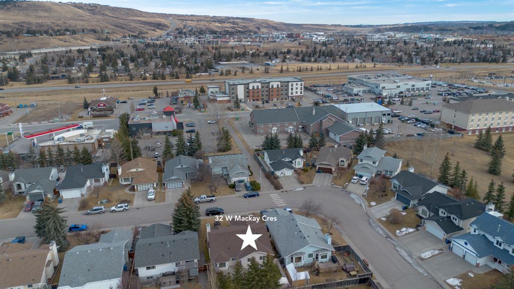 ** OPEN HOUSE Sunday April 19th 1:00-3:00pm** Welcome to 32 W Mackay Crescent, ideally located within walking and biking distance to everything Cochrane has to offer, restaurants, shops, schools and the beautiful Bow River pathways. Offered for the first time, this lovingly maintained bungalow was built in 1991 by the original owner and has been exceptionally cared for ever since. The home features a spacious double attached garage and beautifully landscaped and fully fenced front yard and back yard with mature flower beds for great curb appeal. Inside, a bright open concept layout connects the front living room and dining area, highlighted by vaulted ceilings, updated windows that fill the space with natural light, and a cozy fireplace that creates the perfect gathering spot. The kitchen offers generous workspace, newer appliances, white and bright cabinetry and tile back splash with direct access to an extended deck ideal for summer BBQs. The main level also includes a spacious primary bedroom with two large closets and a 3 piece ensuite, a second bedroom, a 4 piece bathroom, and convenient upper-level laundry that could be converted back to a third bedroom if desired. The fully developed basement features a large family room, a third bedroom or office, and a sizeable mechanical room with ample storage. Additional updates include an irrigation system, roof replaced in 2017, newer upper-level vinyl windows, hardwood flooring in the upper bedrooms, updated tile in the bathrooms, hot water tank replaced in 2016, and an original furnace that has been professionally serviced and cleaned annually. Pride of ownership is evident throughout this exceptional home. Book a showing today, this one won't last long!