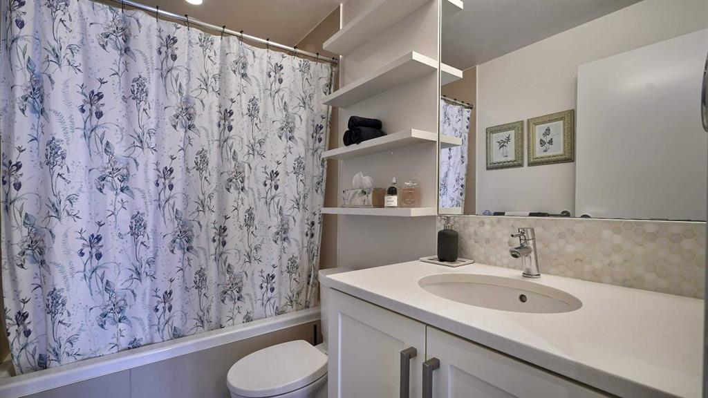 Welcome to the best condo in Bridgeland Crossing. This bright, spacious, and immaculately maintained home offers nearly 1,000 sq ft of living space. The large kitchen with its massive island is perfect for entertaining or casual breakfasts in the morning. Just off the kitchen you will find the dining room, something extremely rare in condo living. The living room has oversized windows that flood the space with natural light, making it perfect for any plant lover. Step onto the balcony and you will be amazed by the size, quickly realizing it is one of the largest in the entire building. The first large bedroom is versatile and can easily be used as a bedroom, office, or anything in between. Across the hall is the 4-piece bathroom with a deep soaker tub, ideal for relaxing. The primary bedroom is a true oasis of comfort, easily accommodating a king-sized bed along with additional furniture, and comes complete with a beautifully finished ensuite. On top of that, this condo includes in-suite storage, in-suite laundry, titled underground parking, and a separate storage room conveniently located on the same floor. Bridgeland Crossing is one of the most popular buildings in the city—book your showing today before this home is gone