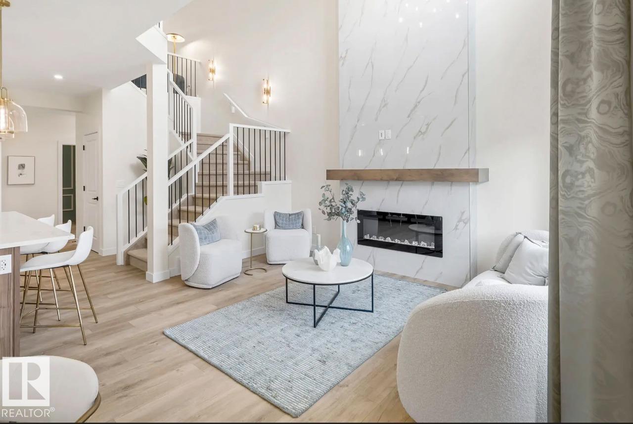 Scheduled for April 2026 possession, 320 27 Street SW offers 2,223 sq ft of spacious, modern living by San Rufo Homes. This 4-bedroom, 2.5-bathroom home features a bright open-concept main floor with a contemporary kitchen that includes quartz countertops, stylish cabinetry, and luxury vinyl plank flooring flowing into the dining and living areas. A main-floor flex space adds versatility for a home office or additional seating. Upstairs, the primary bedroom includes a walk-in closet and private ensuite, complemented by three additional bedrooms, a full bathroom, a central bonus room, and convenient second-floor laundry. Large windows enhance natural light throughout, creating a warm and welcoming atmosphere. A double attached garage provides secure parking and extra storage. Located in the desirable Alces community with access to parks, pathways, and amenities, this upcoming home blends comfort, thoughtful design, and family-friendly functionality. Photos are representative.
