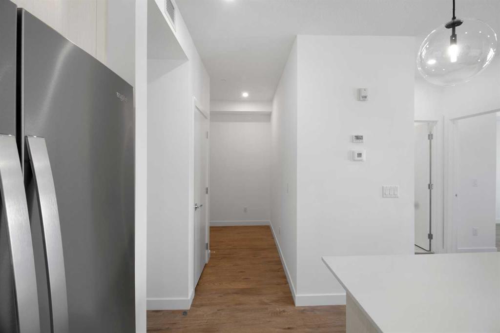 Welcome to this BRAND NEW, never-lived-in 2-bedroom, 2-bathroom condo with a den and 2 TITLED PARKING STALLS, ideally located in the vibrant lake community of Chelsea, Chestermere. Built by TRUMAN, this modern home offers a seamless blend of contemporary design, smart functionality, and everyday comfort—perfect for first-time buyers, downsizers, or investors. Enjoy the lake lifestyle just minutes from Chestermere Lake, featuring beach access, a boat launch, scenic walking paths, parks, and playgrounds. Everyday conveniences are close by, with Chestermere Station and Chestermere Crossing nearby, plus the added benefit of being just a 5-minute drive to EAST HILL Shopping Centre, home to Costco, Walmart, a cinema, and a wide variety of shopping and dining options. Inside, the open-concept layout is bright and inviting, featuring a versatile den ideal for a home office or flex space. Premium finishes include luxury vinyl plank flooring, soaring ceilings, and a chef-inspired kitchen with full-height cabinetry, soft-close drawers, quartz countertops, stainless steel appliances, a pantry, and a large eat-up island—perfect for casual dining or entertaining. The spacious primary bedroom offers a walk-through closet and a private 3-piece ensuite, while a second bedroom, a full 4-piece main bath, and in-suite laundry complete the thoughtfully designed floor plan. Residents of Lockwood enjoy exclusive access to a fully equipped fitness centre, a stylish owners’ lounge, and convenient bike storage—supporting an active and connected lifestyle. Bright, modern, and truly move-in ready, this never-occupied home delivers small-town lake living with big-city convenience—just minutes from Calgary. Live better. Live Chelsea.