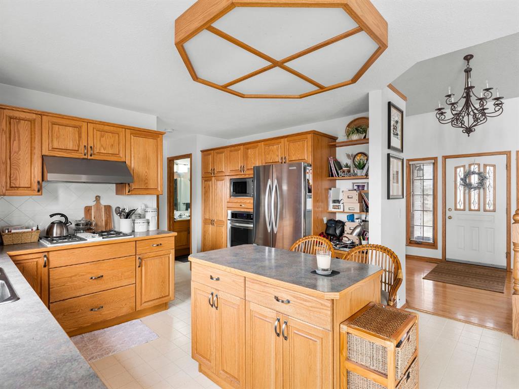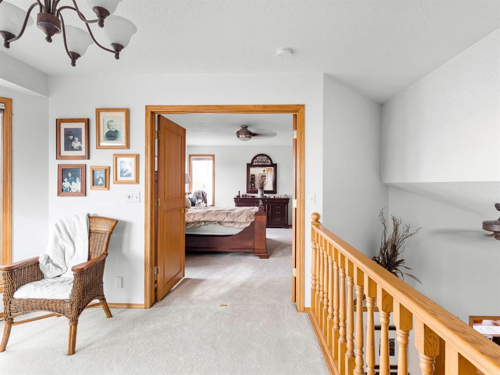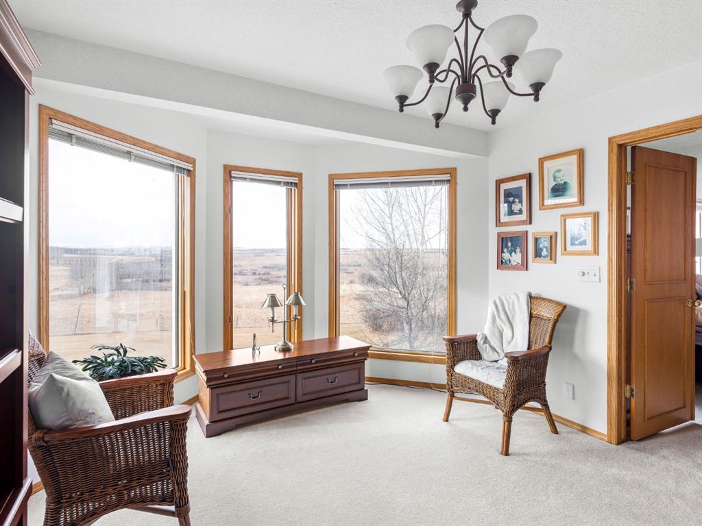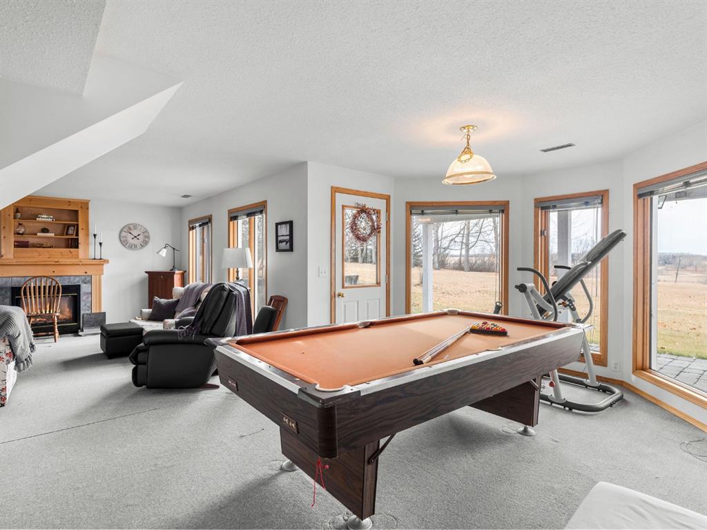 Easily zoned back to COMMERCIAL. Lovingly cared for home on private acreage just west of Carstairs and on a paved road. 2019 sq ft above grade and another 980 on the lower level. This home is well laid out and in extremely good condition. Jenn-Air gas stovetop. Mountain view from many rooms. Well is 12 gpm. The Master bedroom is on the 2nd level and includes a well-proportioned ensuite with a jetted tub, his-and-hers sinks, and a walk-in closet. Other room(s) - Den, Office, or dining room could transition to bedrooms if your family needs the space. The fully developed walk-out basement includes a family room with a fireplace, an office, a bedroom, and a full bathroom. Lots of light and nice views. Newer Hunter Douglas blinds. The shop is a car buff's dream and easily parks 6, but could likely park 9. It is 40 feet by 80 feet with 12' high ceilings. It has 3 bays with doors measuring 10' high. 1 door is 14' wide, the other 2 are 16' wide. One bay is heated with in-floor heating; the other two bays are heated with overhead radiant heat. Floor drains are in each bay. There is a 3-piece bathroom inside the shop. It also has a washer and dryer, fridge, and stove. All equipment will stay with the shop: welder, chop saws, air compressor, etc.
