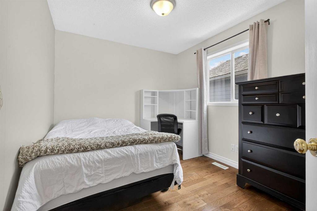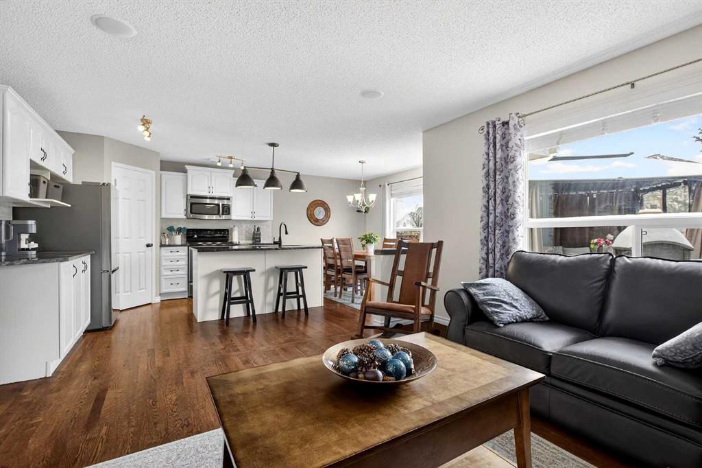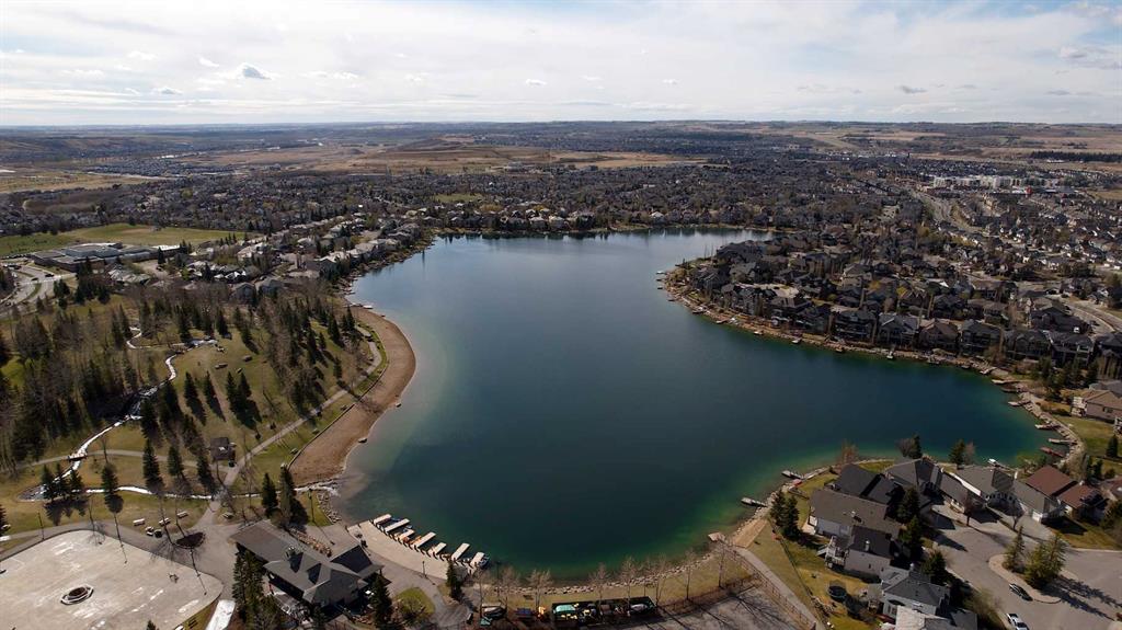 This beautifully maintained original owner two-storey home offers a functional layout and thoughtful finishes throughout. Hardwood flooring extends across the main and upper levels, creating a seamless and inviting feel. The main floor features a warm and welcoming living room anchored by a corner stone-faced fireplace, a well-appointed kitchen complete with pantry, stainless steel appliances, and stone countertops, as well as a spacious dining area ideal for everyday living and entertaining. A convenient powder room and dedicated laundry/mud room add everyday practicality. Upstairs, a bright bonus room provides flexible living space, complemented by two well-sized bedrooms and a four-piece bathroom. The primary suite offers a private retreat with its own four-piece ensuite, including a relaxing soaker tub. The fully finished basement has a large carpeted recreation room, an additional bedroom, and a three-piece bathroom. Outside, enjoy the fully fenced backyard featuring a wood deck with gazebo, underground irrigation and firepit—perfect for summer evenings. A double attached front garage and additional driveway parking complete the home. Recent updates include shingles (2025), paint throughout (2025), dishwasher (2025), HWT (2024), refrigerator (2024), furnace humidifier(2023) Residents enjoy access to exceptional community amenities including a private lake with beach, boat rentals and fishing, basketball and volleyball courts, tennis and pickleball courts, BBQ pits, fitness facilities, playgrounds, and a tobogganing hill, all within walking distance. Chaparral School and St. Sebastian are mere blocks away. With convenient access to Stoney Trail and Deerfoot Trail, commuting throughout the city is quick and easy.