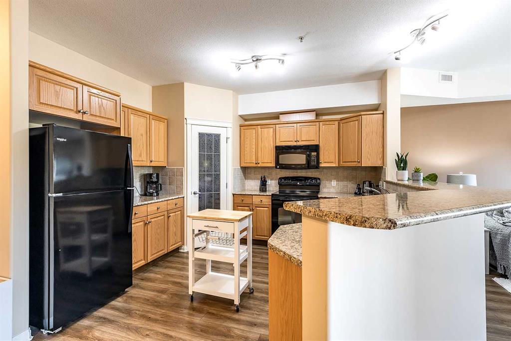 Welcome to a refined condo living in Riverside. This beautifully maintained 2-bedroom, 2-bathroom home offers an elegant open-concept layout, ideal for both everyday comfort and effortless entertaining. The kitchen features rich oak cabinetry, generous counter space, breakfast bar, and a spacious pantry–providing both style and functionality. The adjoining living room is bright and inviting, centered around an electric fireplace that adds warmth and charm. From here, step out onto the balcony and enjoy serene prairie views. The primary suite is a bright retreat, complete with a walk-in closet and a well-appointed 3-piece ensuite. A second bedroom and full bathroom provide flexibility for guests or a home office, Includes the Murphy bed and custom Cabinetry! Additional highlights include in-suite laundry with a stacking washer and dryer, an assigned underground parking stall in the heated garage, and a convenient storage room located directly beside your parking space. This quiet, secure building is situated in one of Medicine Hat’s most desirable communities. Riverside is known for its mature trees, scenic walking trails, and close proximity to the South Saskatchewan River. You’ll find yourself just minutes from parks, shopping, dining, and the city’s vibrant Downtown core. Don’t miss this opportunity–contact a real estate agent today to arrange your private showing!
