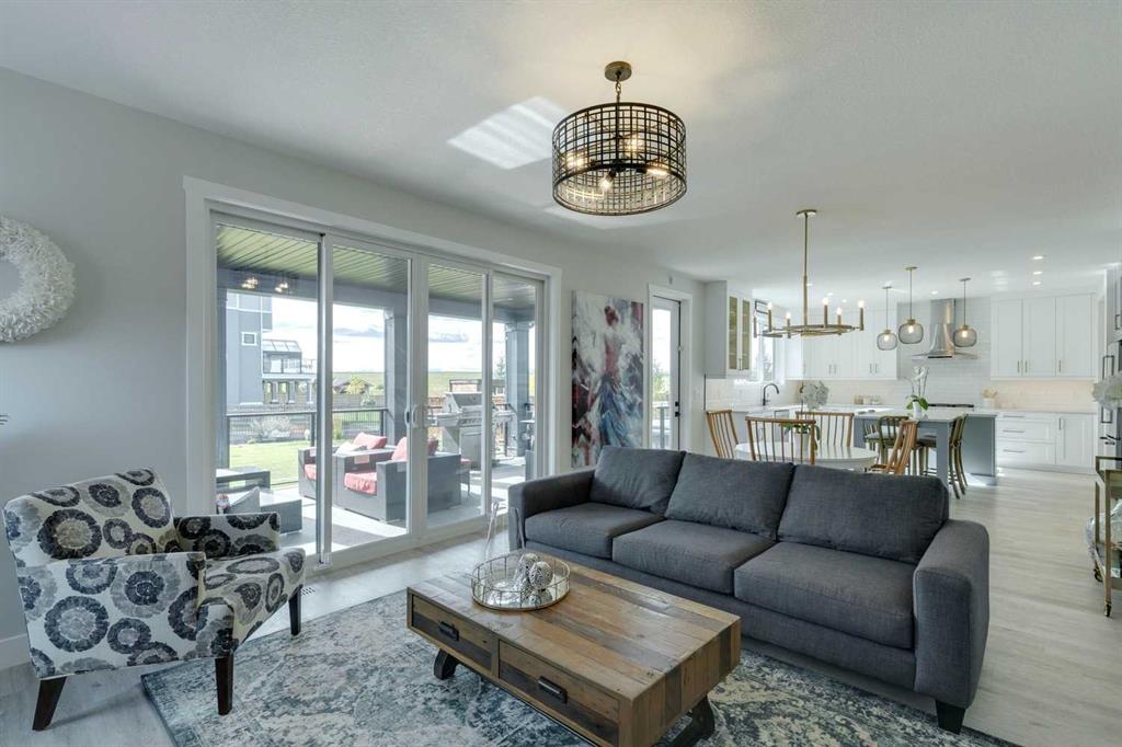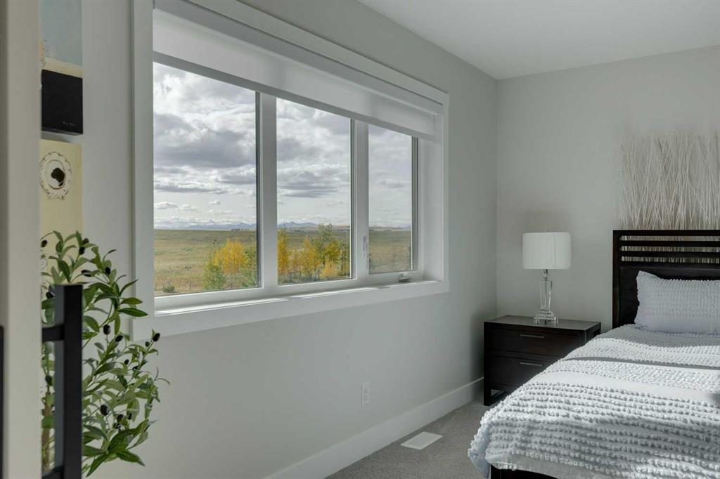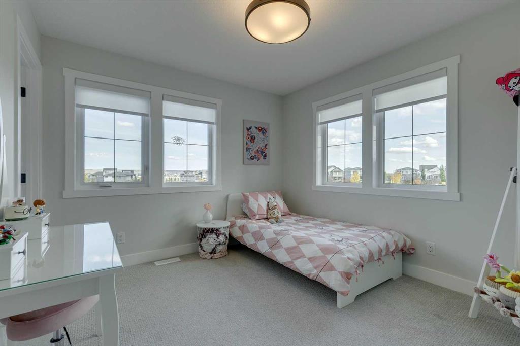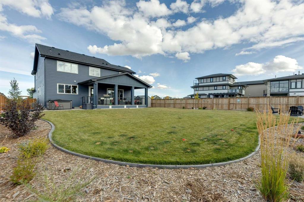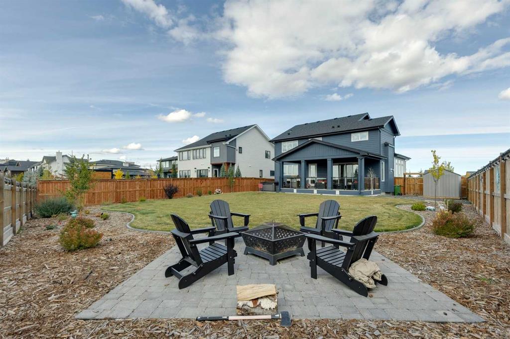 Welcome to 33 Paintbrush Park – a beautifully appointed residence set on an huge (.28 acre), landscaped corner lot fronting the park and a short stroll to Harmony Lake. Offering more than 3,500 SQFT of fully-developed living space, this home seamlessly combines thoughtful design with elegant finishes. The inviting foyer opens into a spacious, light-filled living area anchored by expansive windows that frame views of the covered deck, backyard, and surrounding greenspace and mountain vistas. At the heart of the home, the chef’s kitchen features full-height cabinetry, generous quartz surfaces, a built-in wall oven and gas cooktop. A coffee and prep area (with bar fridge) is situated beside a discreet walk-in pantry. Everyday functionality is enhanced by an organized mudroom, winter coat room, and a side-entry triple garage. A private office overlooking the park provides the ideal work-from-home setting. Upstairs, a central bonus room offers a perfect retreat for family hangouts with peek-a-boo views to the lake. The elegant primary suite is bright and serene, with a spa-inspired ensuite showcasing designer tile, a curbless steam shower, and abundant vanity storage. A custom dressing room with extensive built-ins elevates everyday living. Two additional bedrooms share a well-appointed 4-piece bathroom with double vanities and a walk-in shower. The fully-finished basement extends the living space with a fourth bedroom, full bath, and a large family room designed for games and movie nights. A built-in bar, complete with full-sized fridge and dishwasher, makes entertaining effortless. Ample storage includes an unfinished space easily convertible to a fifth bedroom if desired. This smartly equipped home includes air conditioning, irrigation controls, smart thermostat, two backyard gas lines, 240V rough-in for future hot tub, and additional conveniences like dual hot/cold hose bibs. Harmony is an award-winning lake community offering unmatched lifestyle amenities: two recreational lakes, Mickelson National Golf Course, LaunchPad, a pump track, extensive pathways, multiple playgrounds, local shops, and the exciting future Village Centre and Nordic Spa.