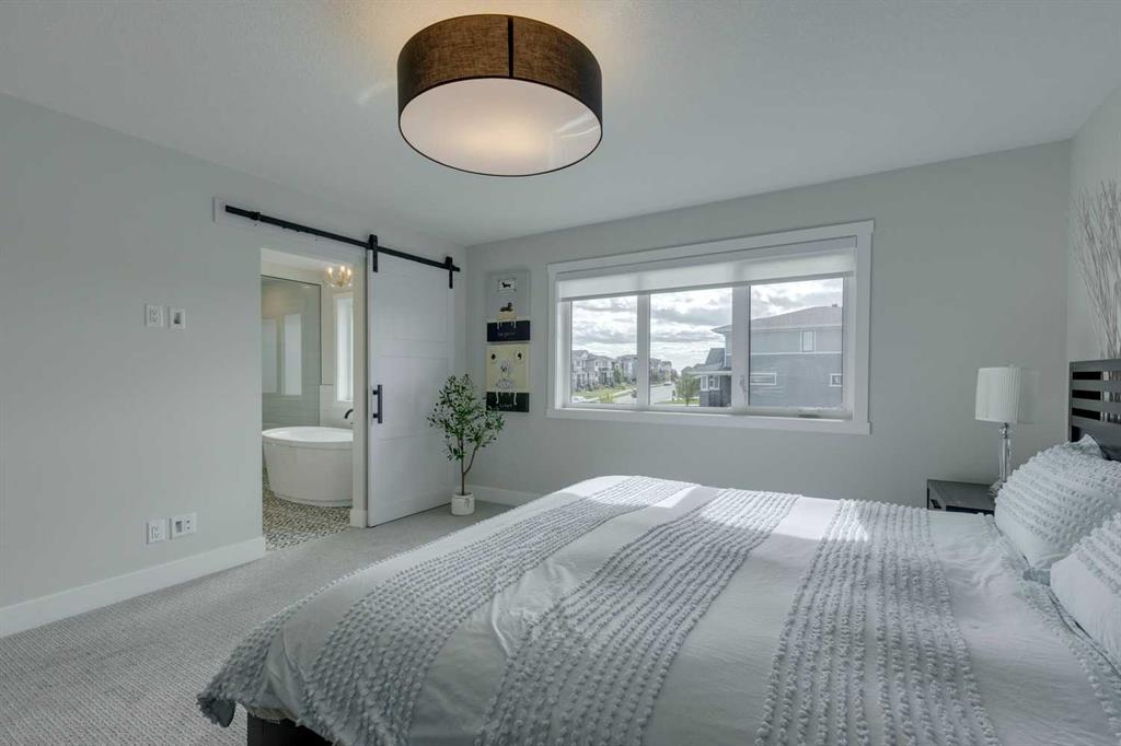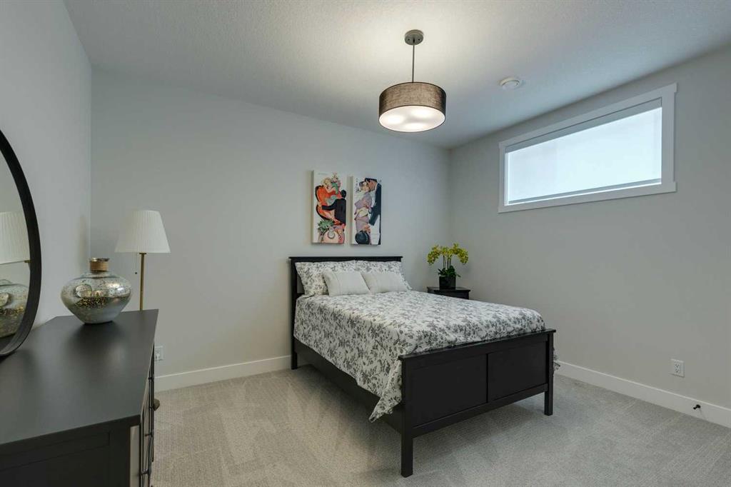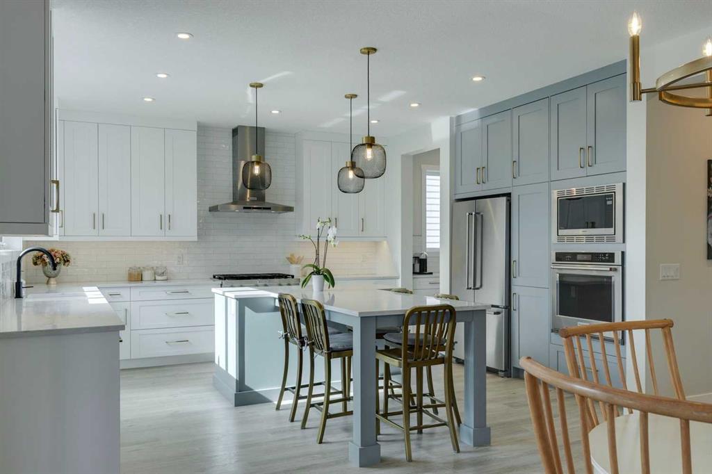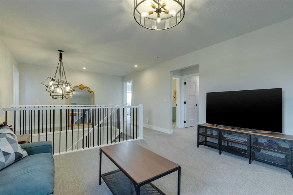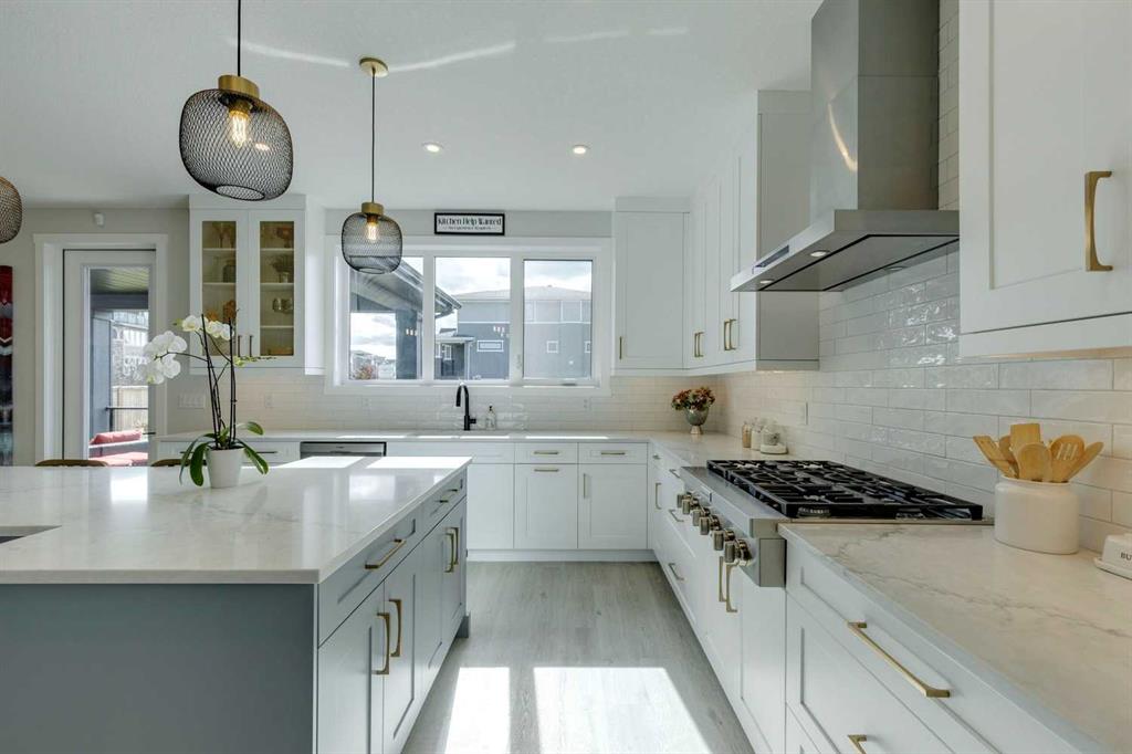 Welcome to 33 Paintbrush Park – a beautifully appointed residence set on an huge (.28 acre), landscaped corner lot fronting the park and a short stroll to Harmony Lake. Offering more than 3,500 SQFT of fully-developed living space, this home seamlessly combines thoughtful design with elegant finishes. The inviting foyer opens into a spacious, light-filled living area anchored by expansive windows that frame views of the covered deck, backyard, and surrounding greenspace and mountain vistas. At the heart of the home, the chef’s kitchen features full-height cabinetry, generous quartz surfaces, a built-in wall oven and gas cooktop. A coffee and prep area (with bar fridge) is situated beside a discreet walk-in pantry. Everyday functionality is enhanced by an organized mudroom, winter coat room, and a side-entry triple garage. A private office overlooking the park provides the ideal work-from-home setting. Upstairs, a central bonus room offers a perfect retreat for family hangouts with peek-a-boo views to the lake. The elegant primary suite is bright and serene, with a spa-inspired ensuite showcasing designer tile, a curbless steam shower, and abundant vanity storage. A custom dressing room with extensive built-ins elevates everyday living. Two additional bedrooms share a well-appointed 4-piece bathroom with double vanities and a walk-in shower. The fully-finished basement extends the living space with a fourth bedroom, full bath, and a large family room designed for games and movie nights. A built-in bar, complete with full-sized fridge and dishwasher, makes entertaining effortless. Ample storage includes an unfinished space easily convertible to a fifth bedroom if desired. This smartly equipped home includes air conditioning, irrigation controls, smart thermostat, two backyard gas lines, 240V rough-in for future hot tub, and additional conveniences like dual hot/cold hose bibs. Harmony is an award-winning lake community offering unmatched lifestyle amenities: two recreational lakes, Mickelson National Golf Course, LaunchPad, a pump track, extensive pathways, multiple playgrounds, local shops, and the exciting future Village Centre and Nordic Spa.