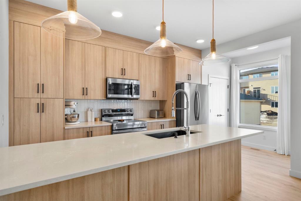 *** OPEN HOUSE THIS SATURDAY, JANUARY 31ST & SUNDAY, FEBRUARY 1ST, FROM 1-4 PM*** Welcome to 33 Shale Ave, located in the highly desirable Greystone community, this 2024 built, bright and beautifully finished home offers a modern layout, thoughtful design, and fantastic future potential. The main floor features a warm and inviting living room with wide plank flooring and large windows, flowing seamlessly into a stylish kitchen complete with quartz countertops, sleek cabinetry, stainless steel appliances, a large peninsula with seating, and contemporary pendant lighting. The adjacent dining area is filled with natural light and offers plenty of space for hosting, while a convenient 2-piece bathroom completes this level. Upstairs, the primary bedroom provides a comfortable retreat with a walk-in closet and a stunning ensuite featuring dual sinks, modern finishes, and a spa-inspired feel. Two additional bedrooms are well-sized and versatile, ideal for children, guests, or a home office, and are complemented by a full bathroom. A conveniently located upper-level laundry room adds everyday functionality. The basement is an open, unfinished space ready for your personal vision, offering room for a future recreation area, additional bedroom, or home gym, along with ample storage. Outside, the backyard provides space to enjoy the outdoors complete with a poured rear parking pad measuring 20'x22', ready for future garage development, adding long-term value and convenience. Set in a growing community close to parks, pathways, pickleball courts, the new Co-op grocery store, Spray Lakes Sports Family Centre, indoor golf, and the Cochrane Golf Club, this home blends contemporary comfort with flexibility for the future. Whether you’re a first-time buyer, growing family, or investor, this home delivers modern style, flexibility, and an unbeatable location in one of Cochrane’s fastest-growing neighbourhoods.
