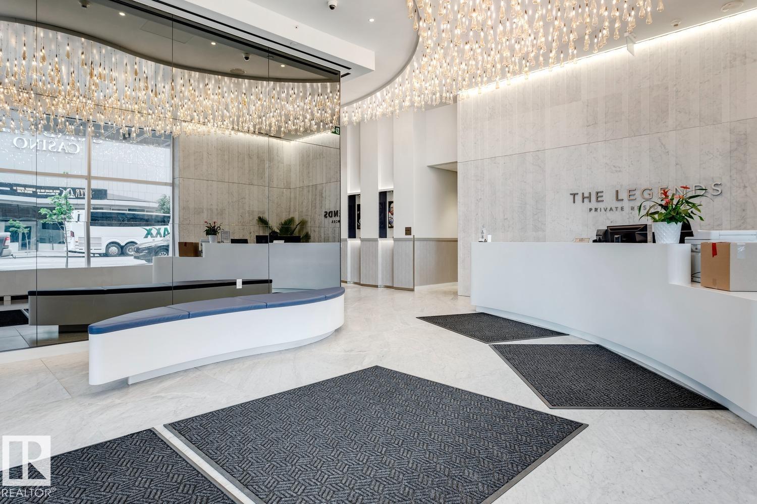 This PREMIUM EXECUTIVE CONDO with AMAZING VIEWS of downtown is absolutely gorgeous! The Legends Private Residences is located above the prestigious J.W. Marriot Hotel in the heart of Ice District. This CORNER UNIT, 1 bed + Den condo features floor to ceiling windows, quartz counters, TITLED PARKING & engineered flooring. The chef’s kitchen has a massive island, breakfast bar, quality built in appliances, gorgeous cabinetry and flows through to the living room offering spectacular views and access to the balcony. The unit is completed with a modern bathroom, laundry & office/den area. This well managed building offers resort like amenities which includes access to the Exclusive Body by Bennet Gym, swimming pool, spa, steam room, hot tub, outdoor patio with BBQ area plus PET WALK AREA, Billiards Lounge & more. Condo fees include heat and water and 24/7 concierge service. A convenient pedway system connects to LRT, ROGERS PLACE, restaurants & food market making the location unbeatable.