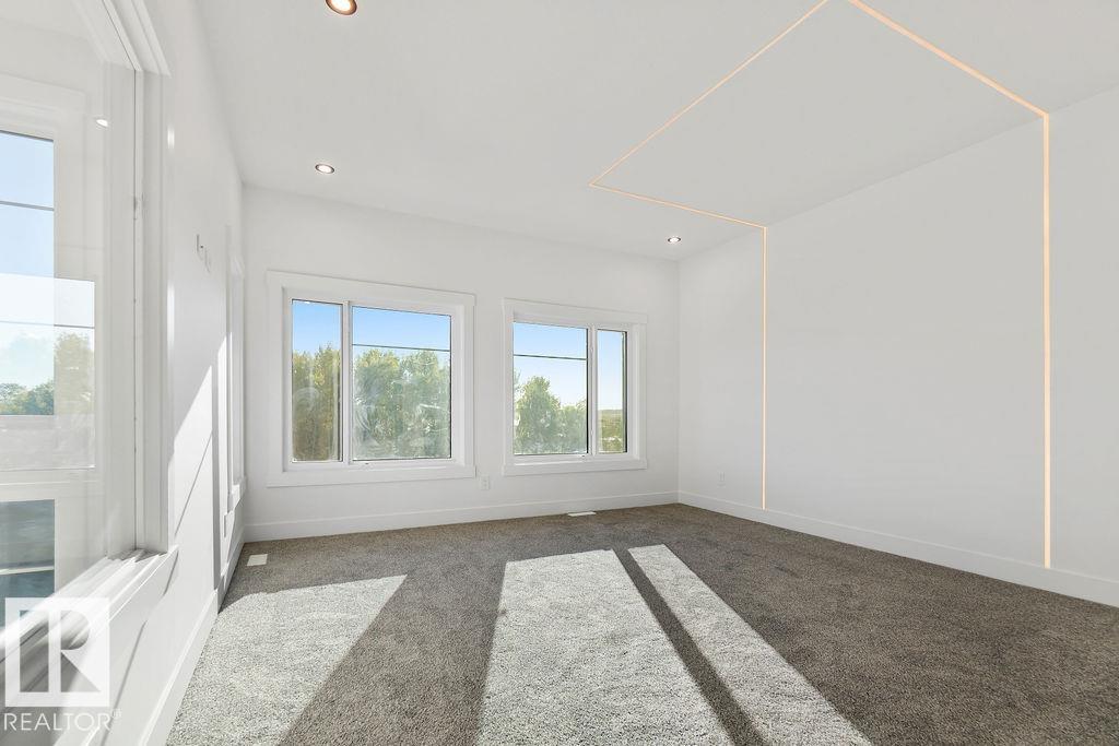 PROMOTIONAL PRICE FOR LIMITED TIME. WALKOUT! GREENSPACE VIEWS! LUXURY FINISHES! Welcome to this stunning 2350+ sqft custom-built walkout home, located in Starling South—backing onto a dry pond and steps from the future school. The open-concept layout showcases a bright living room with soaring open-to-below ceilings and large windows that fill the space with natural light, a custom feature wall with fireplace, and a dining nook overlooking scenic views. The designer kitchen includes an extended layout that can double as a bar area, along with a spice kitchen—ideal for both entertaining and everyday use.The main floor features a FULL BEDROOM and 3-piece bathroom, perfect for guests or multigenerational families. Step outside to the WALKOUT full-width deck, perfect for enjoying the privacy. Upstairs, the primary suite impresses with a feature wall, large windows, and a 5-piece ensuite. A BONUS room, laundry with sink, and two additional bedrooms and bathroom hared bath—complete this beautiful home.
