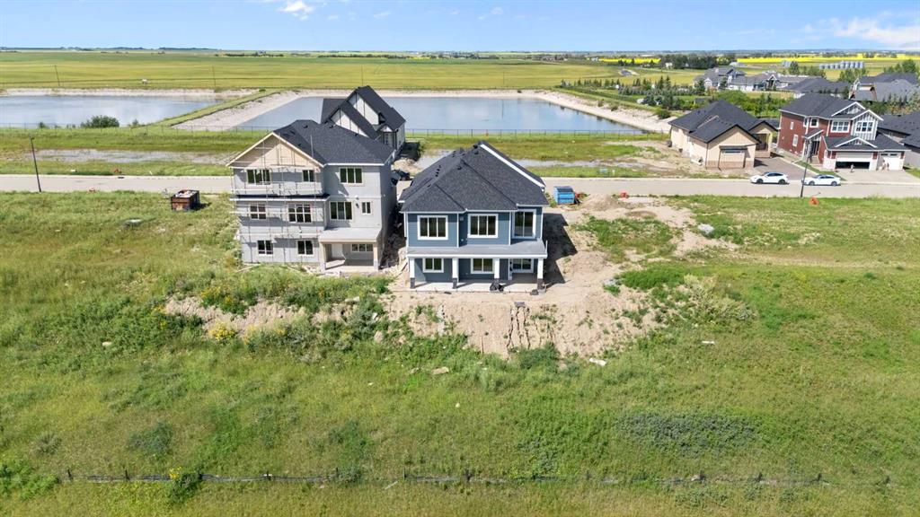 ELIGIBLE FOR FIRST HOME BUYERS GST REBATE. Nestled along the picturesque canal in the Lakes of Muirfield, this stunning 5-bedroom walk-out bungalow epitomizes luxurious living. As you approach the house, the exposed aggregate finished driveway greets you as well as the oversized triple garage. The exterior boasts Hardie board siding and upgraded stone accents, perfectly complemented by recessed lighting in the soffits, illuminating the home beautifully at night. The spacious garage is fully drywalled and taped, with natural gas rough-ins ready for a heater. Step inside to find a blend of modern and classic design elements. The main floor, with its soaring 10 ft ceilings and 8 ft doors, exudes an air of grandeur, while the basement’s 9 ft ceilings create an inviting and cozy atmosphere. The heart of this home is the exquisite kitchen, where cabinets stretch to the ceiling, offering ample storage. Quartz countertops add a luxurious feel, while the black hardware and stainless steel appliances provide a modern contrast. The kitchen is equipped with gas cooktop and wall oven, dishwasher and microwave and large pantry. Entertaining is a breeze with the built-in ceiling speakers and a gas fireplace with a tile finish in the main living area. The primary bedroom is a sanctuary of its own, boasting a stunning feature wall and spacious closets with built in shelving for all your storage needs. Plus enjoy a beautiful five-piece ensuite with dual sinks, tiled shower, and stand-alone tub. Two more bedrooms ( one that could be a den), a full bathroom and laundry room complete this level. The back deck expands across the back of the home and extends your indoor living space to the outdoors. The walkout basement transforms into an entertainment hub, complete with a built-in media center, a wet bar, and an electric fireplace, perfect for movie nights and gatherings. Also, two large bedrooms and a full bath for extended family or visitors. The thoughtful design extends to the flooring, with options for LVP or laminate flooring on the main floors, ceramic tiles in the bathrooms and mudroom, and plush carpeting in the basement with high-grade underlayment for added comfort. The mudroom is practical yet stylish, featuring a stainless steel sink with a black pull-out faucet. Outside, the front yard will have the sod installed, so less for you to do…just move in and enjoy. This 5-bedroom walk-out bungalow on the canal is more than just a house; it's a sanctuary designed for both relaxation and entertainment, offering the perfect blend of luxury and functionality. Close to Calgary, Chestermere, and Strathmore.
