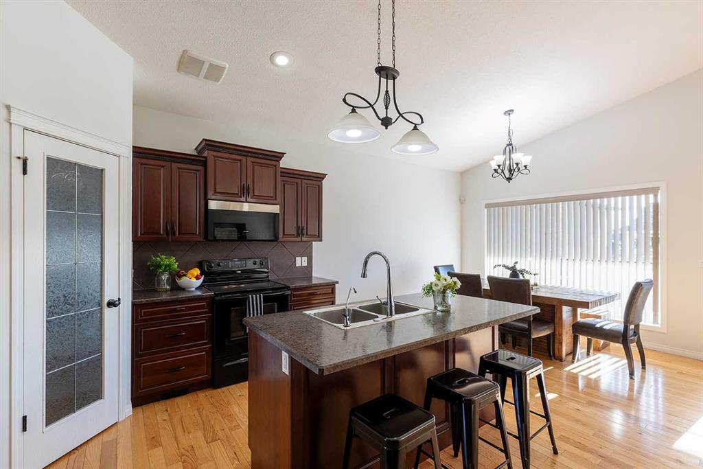 331 Stratton Road SE – Spacious 5 Bedroom Family Home Across from Greenspace. This fully developed 5-bedroom, 3-bathroom modified bi-level in Southridge is move-in ready and perfectly designed for family living. Ideally located across from a beautiful greenspace, this home offers both comfort and convenience. The main floor features rich hardwood floors and an inviting open-concept layout that connects the kitchen, dining, and living spaces. The kitchen boasts plenty of cabinetry, a pantry, and a center island with seating — ideal for casual meals or entertaining. The dining area comfortably fits a large table, while the bright living room offers plenty of space to relax around the cozy gas fireplace. Down the hall are two bedrooms, one of which could easily serve as a home office, playroom, or gym, along with a 4-piece bathroom and the convenience of main floor laundry. Upstairs, the spacious primary suite is a true retreat, complete with a walk-in closet with built-ins and a luxurious 5-piece ensuite featuring a corner jet tub. The lower level is fully finished with a large family/recreation room, two additional generously sized bedrooms, and another full 4-piece bathroom — perfect for guests or teenagers. Step outside to the fully fenced and landscaped backyard, complete with a covered deck (new Duradek) and underground sprinklers. There’s also a double attached garage and RV parking for extra convenience. Recent updates include fresh paint throughout (including the garage), new carpet, new Duradek, a new hot water tank (2021), and shingles replaced in 2018. This home is spotless, well cared for, and ready for new owners to move in and enjoy! Average utilites are $370 a month