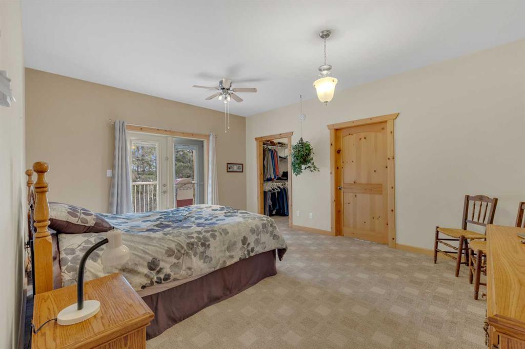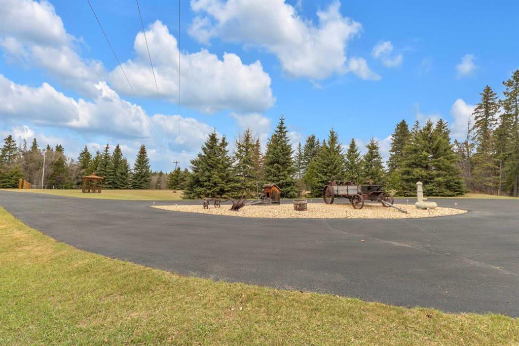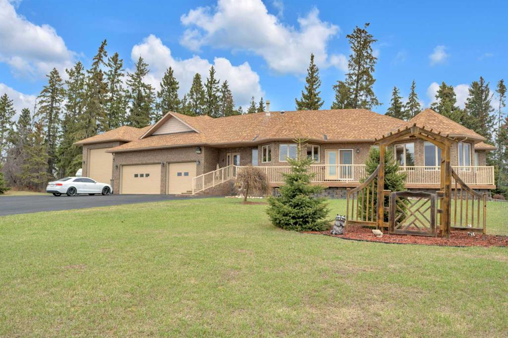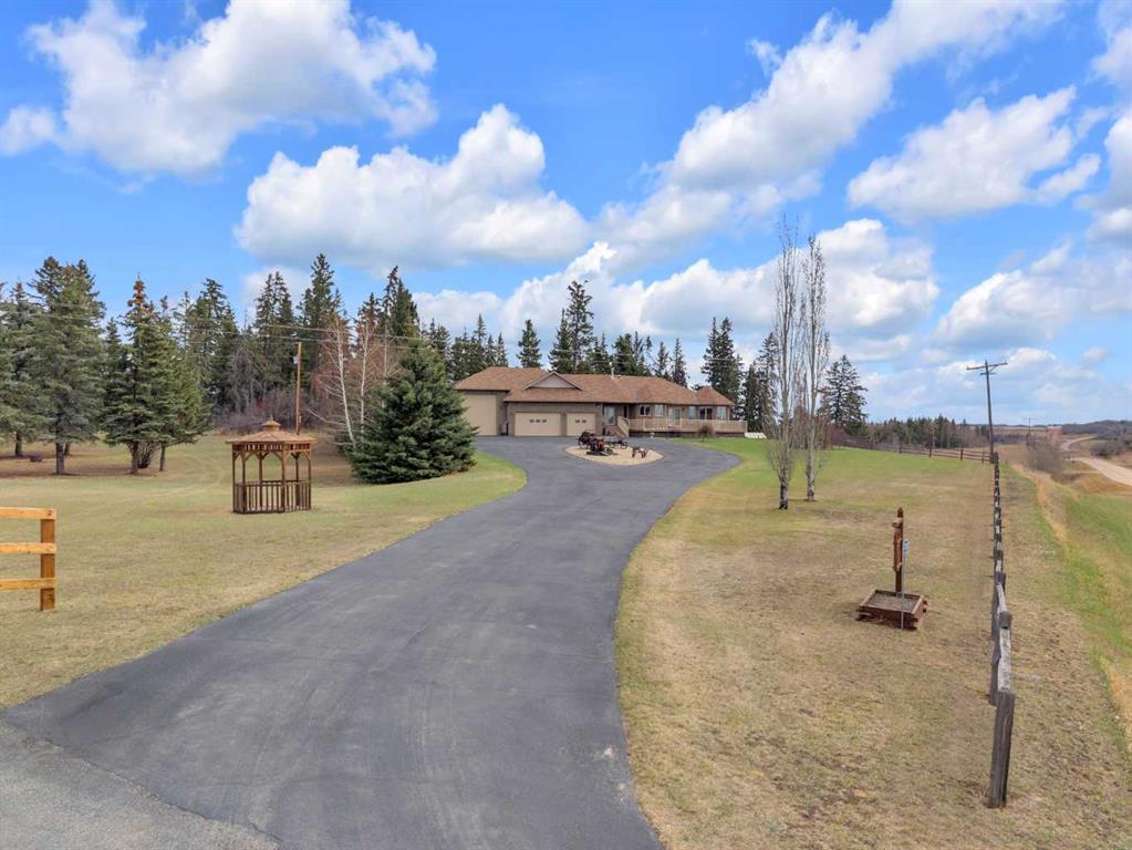 Welcome to the country. This home radiates fine craftsmanship and artistry throughout. The property is approximately 5.25 acres and is set up and fenced for a few animals if you like. Enjoy the peaceful backyard surrounded by your private forest with walking trails. Sit on your back deck and enjoy your coffee while watching the many types of wildlife skirt around. The oversized heated triple garage has plenty of room for your vehicles with a workshop on the back that could be opened up for more parking. On the side of the garage is a an attached r.v. bay (39x15.6) big enough for a class A motorhome complete with 30 amp power both inside and out. Drive right up to the house with the circular driveway and back out of the garage with ease. Step inside to the spacious front entry leading around to the open concept kitchen, dining room, and living room. If your into entertaining, there's lots of room for that both upstairs and down. The main floor and basement have underfloor heat supplied by a well maintained boiler system. (Just serviced this year). The main floor underfloor piping is enveloped in 1.34 inches of chipcrete to provide a very efficient and reliable heating system. The kitchen is a beautiful work space with plenty of cabinets, lots of counter space, meganite counter tops, a center island, and beautiful natural light flooding in from the south east. Relax in the large primary suite with a walkin closet, room for multiple dressers and a king size bed, plus the 5 piece ensuite. Laundry is easy on the main floor with a laundry sink, and the washer and dryer included. The basement has 2 more bedrooms, a full bathroom, lots of storage, a wet bar, and a walkout to the gorgeous back yard. There is a security system included with no contract at this time. Enough from me. Come see for yourself all the beauty this home has to offer only a few minutes from Red Deer and Blackfalds.
