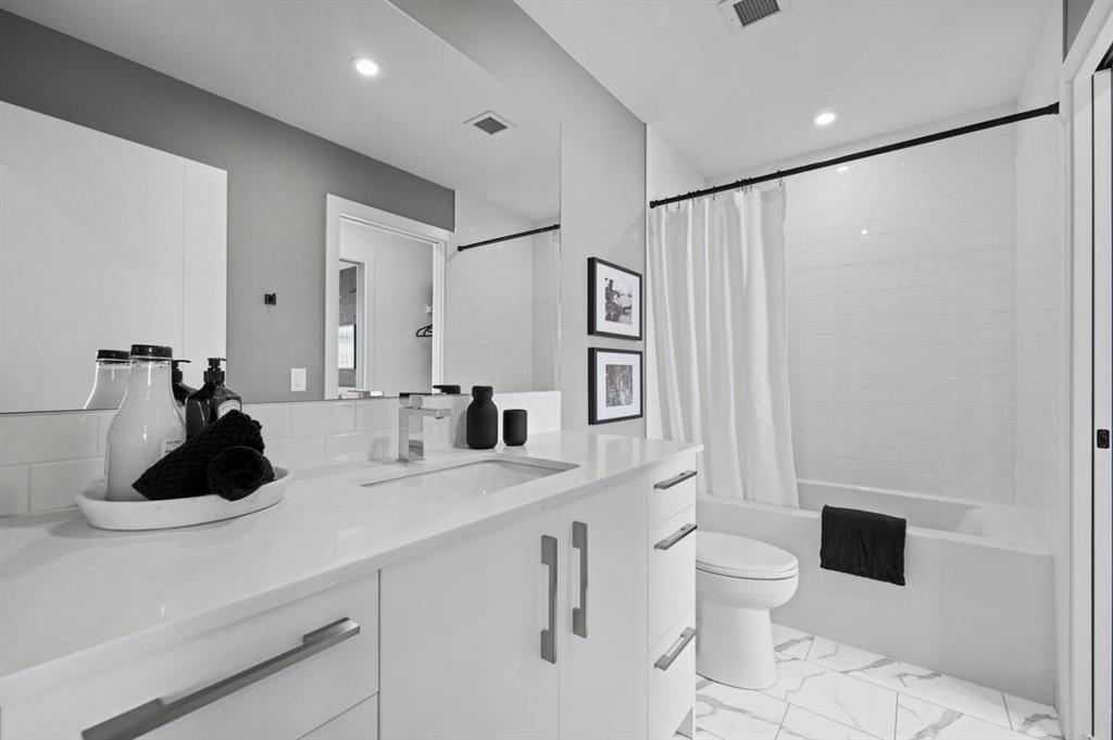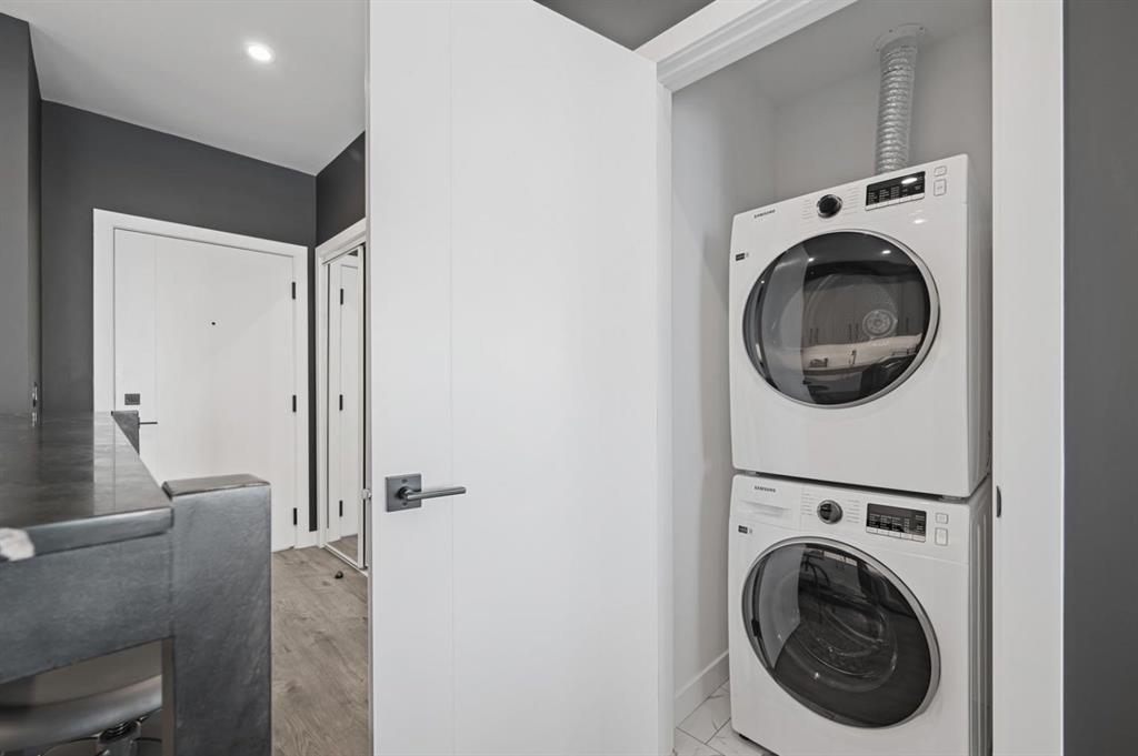 Discover modern city living at Frontier, a boutique development by Truman ideally situated in the heart of Kensington—one of Calgary’s most walkable and culturally rich neighbourhoods. This 2-bedroom, 1-bathroom condo is a smartly designed space that balances style and functionality, making it an excellent choice for urban professionals, couples, or savvy investors. The open-concept layout is filled with natural light, offering a contemporary flow that maximizes efficiency in every square foot. The streamlined kitchen features quartz countertops, full-height cabinetry, and premium stainless steel appliances—all connected seamlessly to the bright, airy living area, perfect for hosting friends or unwinding after work. Both bedrooms are designed with comfort and flexibility in mind—ideal for restful nights, a productive work-from-home setup, or accommodating guests. The sleek 4-piece bathroom is finished with clean, modern details, combining function with a spa-inspired feel. Additional features include one titled underground parking stall and access to exclusive resident amenities such as a fully equipped fitness centre, co-working lounge, secure bike storage, and a beautifully landscaped private terrace. Just steps from boutique shops, cafés, acclaimed dining, scenic river pathways, LRT stations, and Calgary’s downtown core, Frontier offers exceptional value and location for those looking to live or invest in one of the city’s most vibrant communities. *Photo Gallery of Similar Unit*