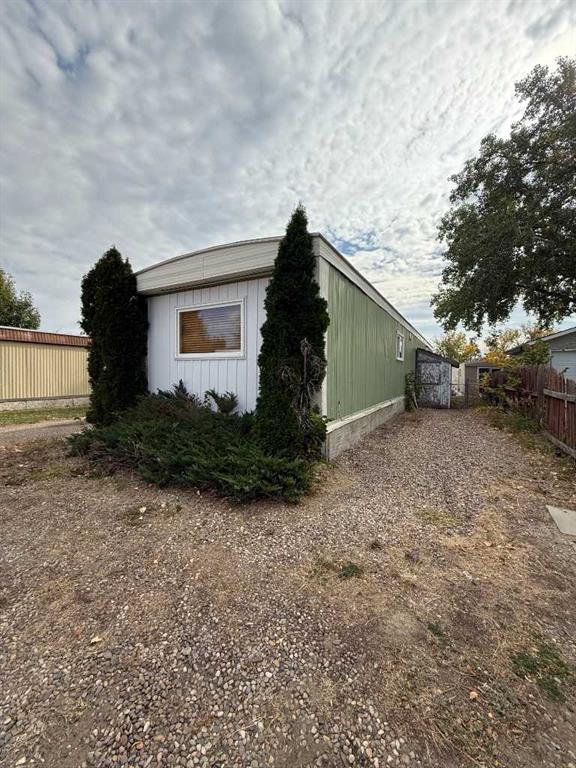 Looking for an affordable option with NO lot fees? This mobile home sits on its own lot and offers an open-concept main living area with a kitchen that includes a fridge, stove, pantry, and dining space. The living room is spacious. There are two good-sized bedrooms and a full 4-piece bathroom with a washer and dryer included. A front porch provides bonus storage space. Outside, there is a partially fenced yard with a parking pad, along with two sheds for extra storage. This property has lots of potential and is a great option for affordable ownership. Call today to view!