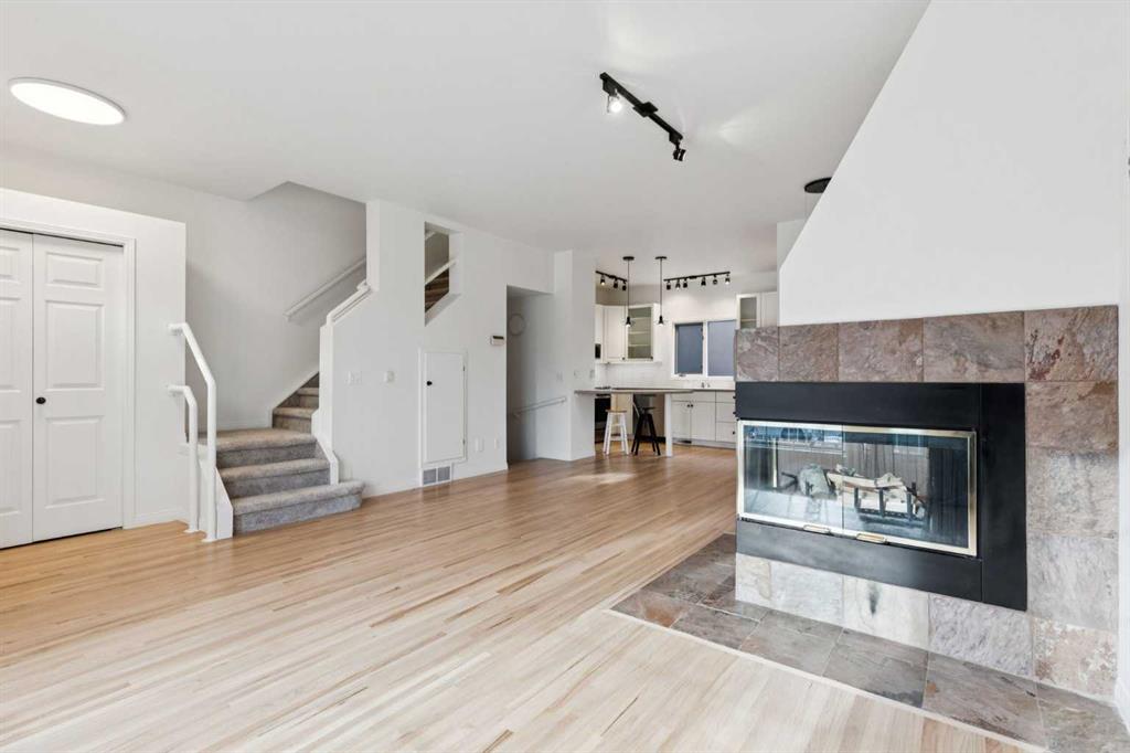 Welcome to this newly updated townhome on a beautiful tree-lined street in the sought-after community of Killarney. This 2 bedroom, 2 bathroom home offers exceptional parking with a double attached garage, driveway, and an additional assigned stall off the alley—a rare find that must be seen in person to be fully appreciated. From the moment you arrive, the curb appeal draws you in with an inviting front balcony where you can sip your morning coffee and enjoy the canopy of mature trees out front – it’s giving brownstone vibes. Inside, you’re greeted by fresh paint throughout, gleaming refinished hardwood floors, and a bright, airy open-concept living space. Natural light pours through large south-facing windows, filling the living room with warmth and highlighting the cozy wood burning/gas fireplace. The kitchen overlooks the dining and living areas to create a seamless space for entertaining and features a brand-new suite of appliances: stove, dishwasher, refrigerator, fan/microwave, and toaster oven. The main floor is complete with a powder room and access to the back deck, perfect for your gas BBQ. Upstairs, with brand new carpet underfoot, you’ll find the showpiece primary bedroom with vaulted ceilings, new windows, a walk-in closet, and a large 4-piece ensuite. Beneath the new carpet in the walk-in closet is rough-in plumbing for a potential second bathroom (sink and toilet), offering future flexibility. A spacious second bedroom completes the upper level. The lower level features a meticulous double attached garage with painted floors and a newly insulated garage door, plus a laundry room/flex space for extra storage or a hobby area. This rare opportunity combines inner-city convenience, modern comfort, and timeless charm. You’re just steps to Killarney’s amenities, including the Killarney Aquatic & Recreation Centre and 17th Avenue, with a quick commute to Marda Loop and downtown. Westbrook Mall and the C-Train station are also within easy walking distance. With flexible possession available, this is your chance to secure a special home in one of Calgary’s most desirable neighbourhoods. Book your private showing today and experience all that this Killarney townhome has to offer!
