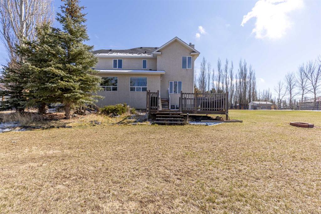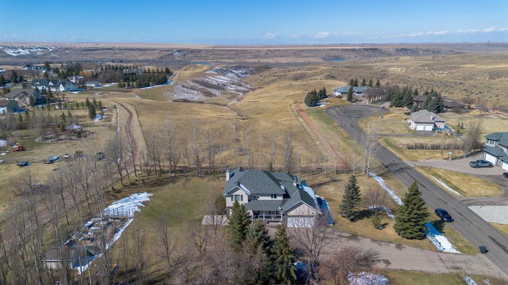 Here's a stunning and spacious home in Mountain Meadows; situated on 1 acre that backs green space and the coulees! This 2 storey boasts nearly 2,800 sq/ft of living space above grade alone with an additional 1,080 sq/ft of living space in the basement. There's a oversized 35'11" x 21'6" attached garage along with a tremendous amount of parking on the driveway and a cozy east-facing front veranda, along with timeless exterior architectural lighting. Stepping inside, there's an office/flex space just off of the entryway, an eat-in kitchen with granite counter tops and island for food prep. The living room is complete with a fireplace and the sun room in the back of the home acts as a multi-use space bracketed by the west-facing coulee views. There's a laundry room/mudroom off the garage complete with a sink and a powder bathroom rounds off the main floor. Heading upstairs, there are 4 bedrooms and 2 full bathrooms. The primary retreat boasts TWO walk-in closets and a 5 piece ensuite, including a jetted tub. The finished basement has 2 more bedrooms (both with walk-in closets), a 4 piece bathroom and well sized family room. The 1 acre lot is fenced and includes a fenced-in garden, additional planter boxes, a deck with natural gas line for BBQing and mature trees!