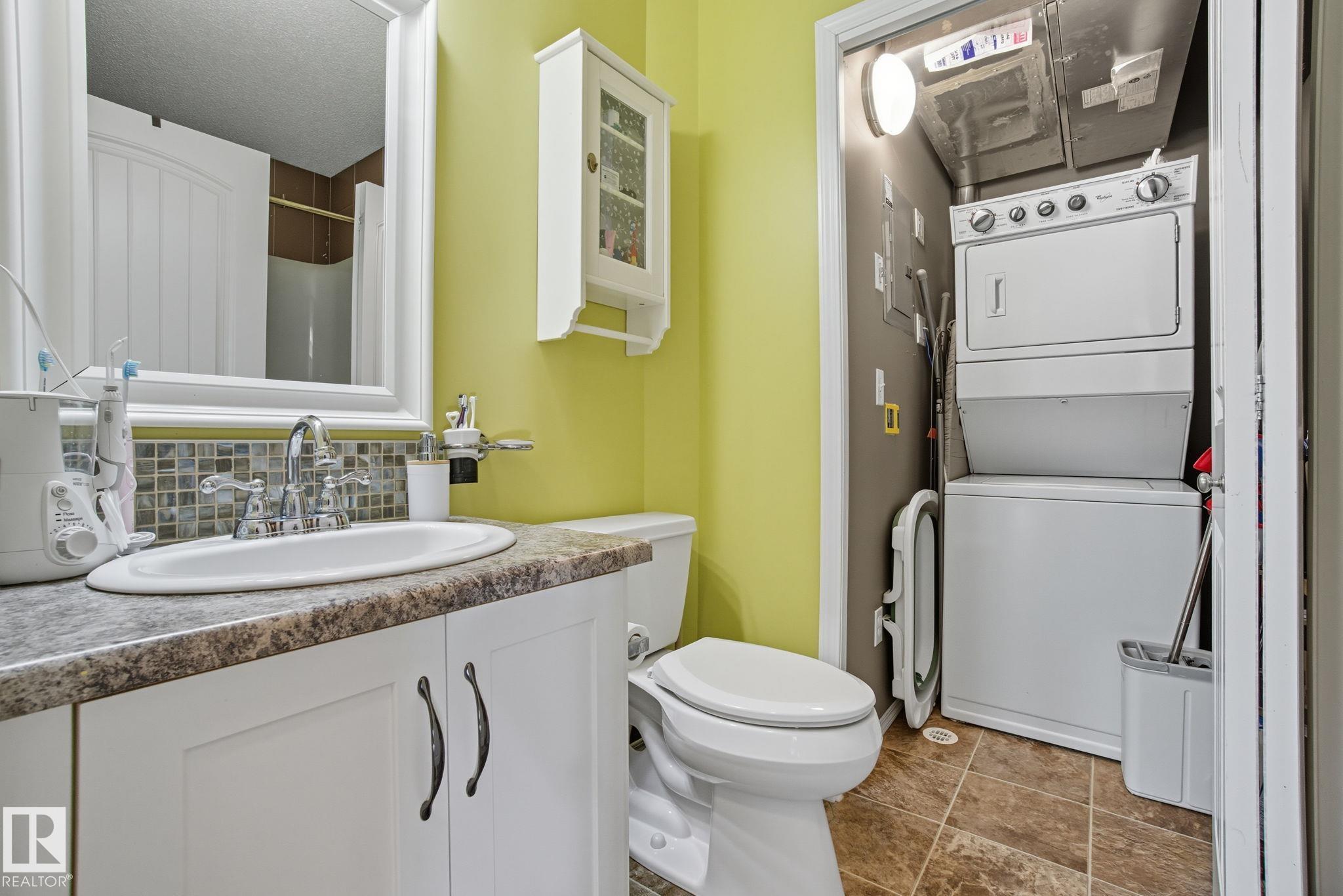 Welcome Home! Why keep renting when you can invest in your own home and start building equity? This beautifully maintained top-floor corner carriage-style condo in Charlesworth offers an inviting open layout with vaulted ceilings and large south-facing windows that fill the space with natural light. The bright kitchen features modern white cabinetry, dark appliances, a tile backsplash, and a corner pantry. The spacious primary bedroom easily fits a king-size bed, while the den is perfect for an office or guest room. Enjoy the 4-piece bath with enclosed in-suite laundry for added convenience. Step onto your covered balcony to relax and take in the serene pond and park views. Complete with a designated parking stall, visitor parking, and close proximity to shopping, schools, parks, lakes, trails, and public transit. Move-in ready and ideal for first-time buyers, investors, or downsizers looking for comfort and convenience in a prime location!