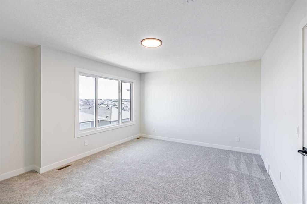 Welcome to 34 Amblefield Heights NW, a stunning 1,891 sq. Ft. single detached home in the vibrant community of Ambleton. This is a newly built house property, has never been occupied and offers modern style, thoughtful design, and an unbeatable location beside a park and basketball court perfect for families and outdoor living. The main floor features a bright open concept layout with a spacious living room including an electric fireplace, ideal for relaxing or entertaining. The modern upgraded kitchen includes stainless steel appliances, a large island, quartz counter tops, and plenty of cabinets, while a patio door off the dinning room leads to your private balcony great for BBQs and summer evenings. A main floor office/den provides a quiet space for work or study, and a front double attached garage offers convenience and storage. Upstairs, you’ll find a large loft/bonus room, three generous bedrooms, and laundry. The primary suite boasts a walk-in closet and a walk-in shower. Both secondary bedrooms also feature walk-in closets, providing ample space for the whole family. The walk-out basement offers incredible potential whether you envision a recreation area, home gym, or future suite development (subject to approvals). Framing and insulation done for the basement walls (see picture). Enjoy direct access to your backyard, with open green space and the park just steps away. This home combines function, comfort, and modern finishes in a quiet, family-friendly setting — all just minutes from shopping, schools, and major routes. 5 mind drive to FreshCo Evanston, Walmart Supercentre Sage Hill Gate.