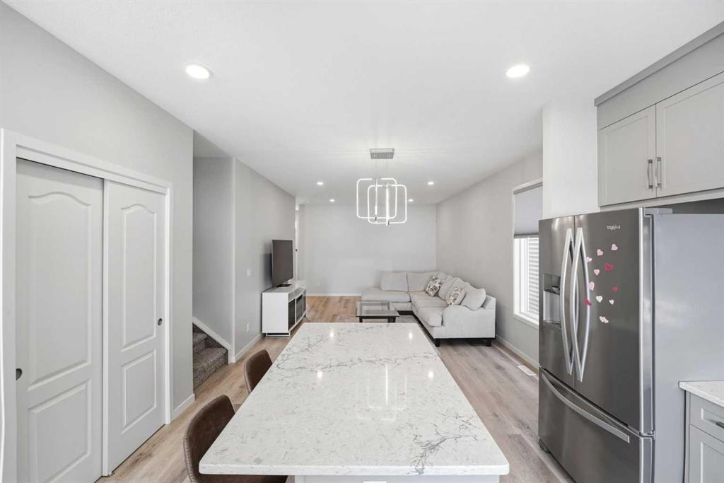 Introducing a distinguished, design-forward residence in the prestigious community of Glacier Ridge NW, Calgary, offering over 2,400 sq ft of impeccably curated living space. This 6-bedroom, 4-bathroom estate seamlessly blends architectural sophistication with modern functionality, complete with a fully legal 2-bedroom private suite—an exceptional opportunity for refined multi-generational living or executive-level income potential. The main level is a statement in elegance, defined by soaring 9’ ceilings, expansive light-filled windows, and flawless luxury vinyl plank flooring. At its heart, a chef’s designer kitchen showcases premium countertops, bespoke cabinetry with crown detailing, and a suite of stainless steel appliances, all flowing effortlessly into a warm, inviting living space. A main floor bedroom and full bath offer versatility with elevated comfort. Upstairs, the home reveals a serene primary retreat, complete with a spa-caliber ensuite featuring a walk-in shower and dual vanity, accompanied by generously proportioned 2 secondary bedrooms, laundry Room, main bathroom and a sophisticated bonus lounge designed for relaxation or entertainment. The private legal suite is thoughtfully appointed with its own custom kitchen, separate laundry, full bath, and two bedrooms, delivering a turnkey, income-generating experience without compromise. Outdoors, a sun-drenched east-facing backyard and elegant deck create a tranquil setting for morning light and refined outdoor living, complemented by double detached garage. Perfectly positioned with effortless connectivity via Stoney Trail, Deerfoot Trail, Shaganappi Trail, and Sarcee Trail, and moments from premier retail destinations including CrossIron Mills and Beacon Hill Shopping Centre.
