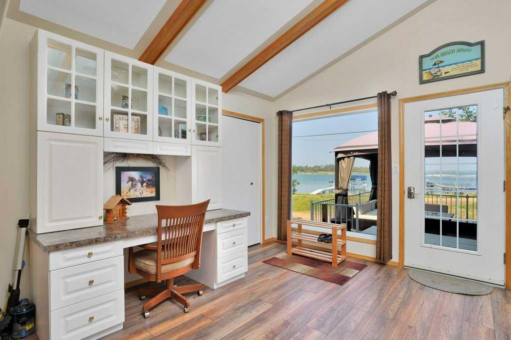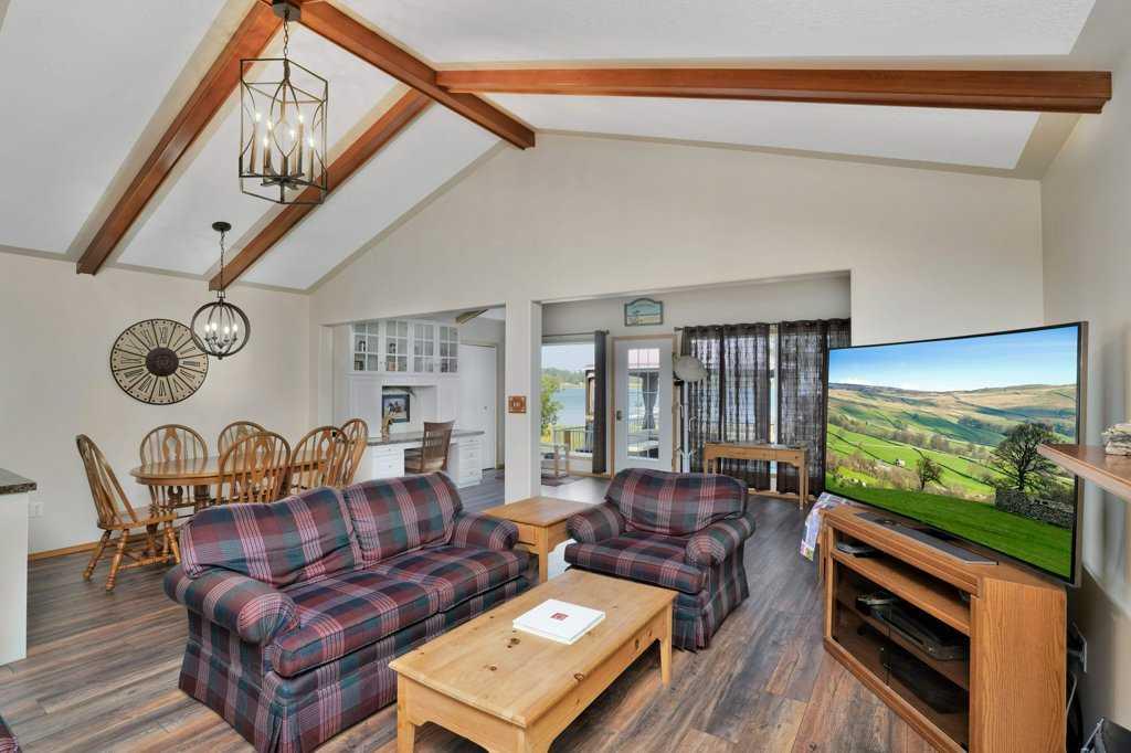 Welcome to your TRUE lakefront oasis! Imagine stepping directly from your home onto the beach or to be within mere steps of a boat to start your day on the water! This rare gem is a once-in-a-lifetime opportunity to own a property that offers amazing views from both ground and upper deck levels. A Four-season cabin boasting nearly 2,000 sqft of above-ground living space on massive lot with 3 bedrooms, a bonus room, and a den that could easily be converted into additional bedroom space if needed. The property also has 2 full bathrooms. From the moment you pull up, the curb appeal is undeniable with the expansive front deck and gazebo perfect for outdoor entertaining. Step through the front door and you'll be charmed by the quaintness of the cabin with its wood beams and vinyl plank flooring. The large family room, complete with a gas fireplace, provides a cozy spot for chilly nights, while huge windows offer unobstructed views of the lake. Built-in cabinets, including a desk/office area, and a full-size dining room for sit-down family meals add to the home's functionality. The kitchen offers plenty of cabinets and storage space and has been updated with unique lighting fixtures. A few steps down lead you to a den that could double as a guest room or serve as a private media room. The den opens to the garage, a perfect space for storing your water toys with its attractive custom floor, durable tin interior, and ample storage, workbenches, and shelving. Upstairs, you'll find a MASSIVE primary bedroom with enough space for a sitting area and double closets. This room leads into the bonus room currently being used as the fourth bedroom. From the bonus room, a garden door opens onto the upper deck, providing a breathtaking expansive lake view. The upper deck is set up for a hot tub, making it an ideal spot for relaxation-imagine the sunsets you will see while enjoying a little dip in the tub! With the cabin being positioned at the front of the large lot, the balance of the land features mature trees in the background, offering a natural habitat for children to explore. The home is heated by a boiler system and has two large holding tanks which are very convenient for extended stays. This property is a perfect generational family retreat, providing a place for your family and friends to create memories for many years to come!