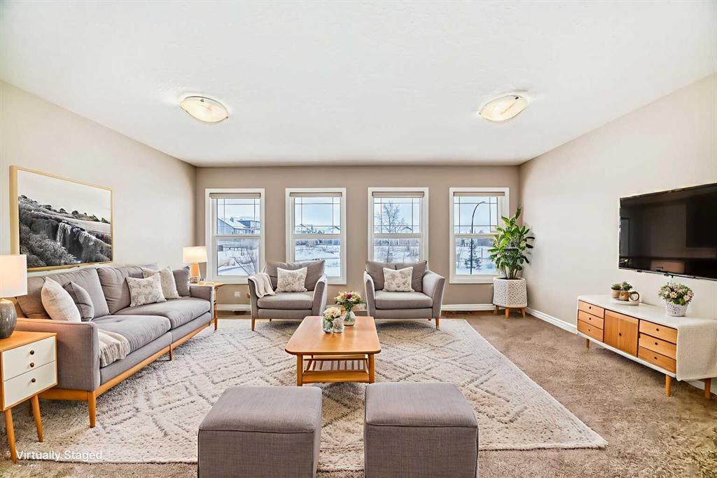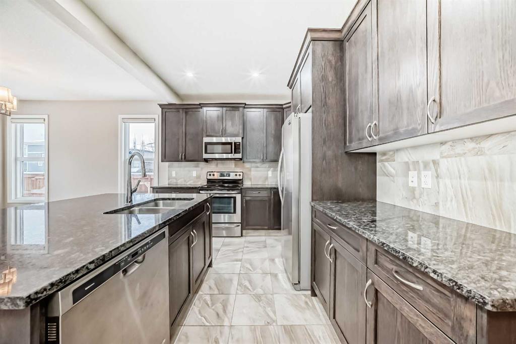 **OPEN HOUSE SAT DEC 6 FROM 12-2 PM** STOP THE CAR! Ideal 3 bed/2.5 bath two storey w/double attached garage, on a large NW facing corner lot, facing a beautiful park & playground, just steps from pathways in Fish Creek & the Bow River in Riverstone. The open concept main floor features a large welcoming foyer, 9' ceilings, easy maintenance tile flooring throughout, and windows all along the back & side flooding the area with natural light. The lovely kitchen features a large island, ceiling height cabinetry with plenty of storage, granite countertops and a large pantry. The generous living & dining spaces are perfect are perfect for hosting large family celebrations and entertaining friends. The powder room & mudroom complete the main floor. Off the dining room is the huge corner lot backyard with a good sized deck and plenty of space for kids & fur babies alike to run and play. On the upper level, you'll find a great bonus room overlooking the serene park & playground across the street, ideal for family movie nights. The relaxing primary suite feature large windows overlooking the backyard, a good sized walk in closet and a 5 pc ensuite featuring a separate shower & tub for unwinding in at the end of of the day. Two good sized additional bedrooms, 4 pc main bath & laundry area finish the level. Going down to the lower level you'll find a separate entry and unfinished basement, just awaiting your plans for development. Riverstone is ideal for families, with many km's of walking & biking paths to explore Fish Creek or enjoy fly fishing on the world famous Bow River, perfectly blending nature in the city. The Century Hall community centre features year round activities both inside & out for all ages, including an outdoor skating rink, tennis courts. Schools, shops, restaurants & services are right up the hill. With easy access to both Deerfoot Trail and Stoney Trail this location makes commuting a breeze. Book your showing today!