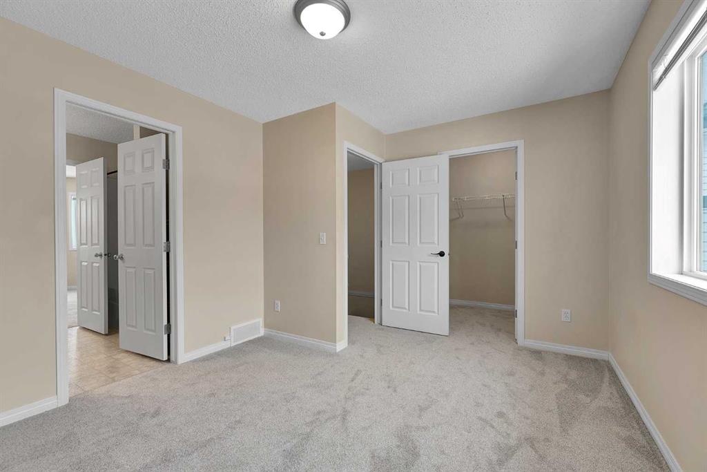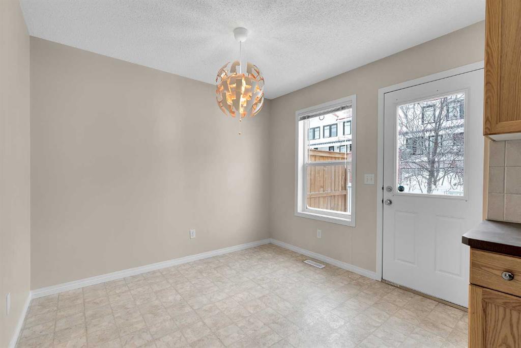 **Open House: 1-3 pm, Sat, Feb 28**. Tucked into a quiet end of the complex in the highly sought-after community of Royal Oak, this charming move-in ready two-storey townhome offers 2 bedrooms, 1.5 bathrooms, two parking stalls directly in front of the unit, and low condo fees — with quick possession available! Step inside to a bright and inviting main floor featuring brand-new carpet and a cozy living room complete with a fireplace and a beautiful bay window that fills the space with natural light. The functional kitchen is well equipped with stainless steel appliances, including a new dishwasher and range hood, ample cabinetry, and a dedicated dining nook. From here, step out onto your private, spacious deck — perfect for morning coffee or summer BBQs — surrounded by mature trees that provide added privacy. A convenient two-piece powder room completes the main level. Upstairs, you’ll find a generously sized primary bedroom and a comfortable second bedroom thoughtfully positioned on the opposite end of the unit, providing excellent privacy between the rooms. A shared four-piece bathroom and brand-new carpet throughout complete the upper level. The unfinished basement offers excellent potential for future development and includes the laundry area, adding convenience while still allowing plenty of room for storage or customization to suit your needs. Ideally located just 800 metres from elementary and junior high schools and only a five-minute drive to Robert Thirsk High School, this home is close to the new YMCA, grocery stores, cafes, restaurants, and everyday amenities. Crowfoot Library and the LRT station are just ten minutes away, with quick access to Stoney Trail and Country Hills Boulevard. CrossIron Mills is also a short drive away. This is the perfect opportunity for first-time buyers, investors, or downsizers. Book your private showing today!