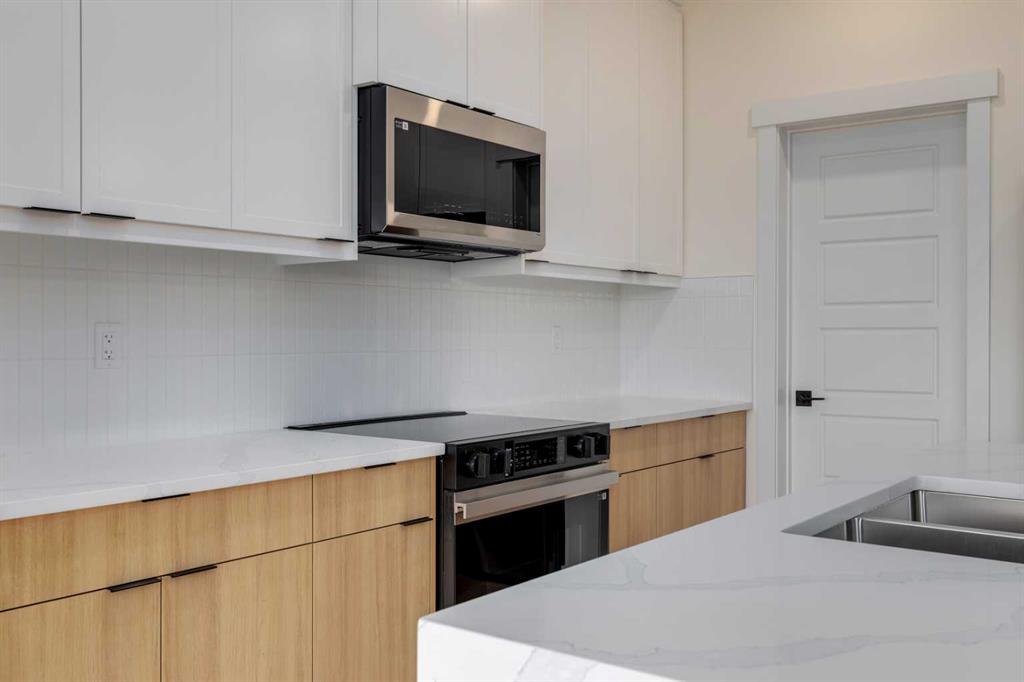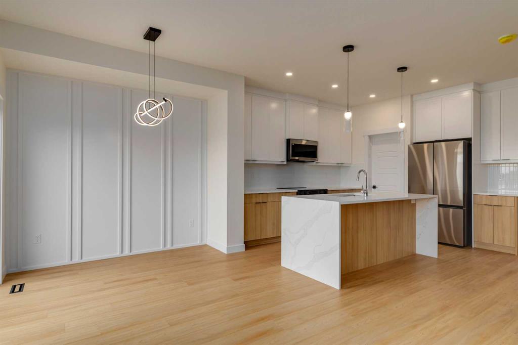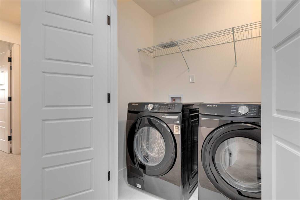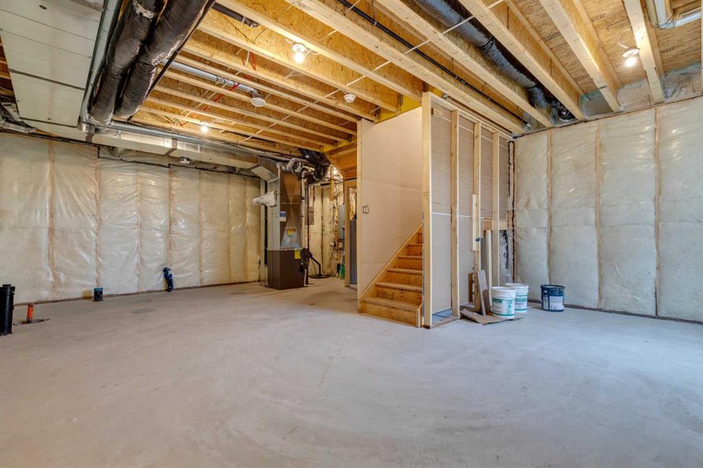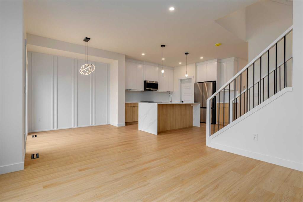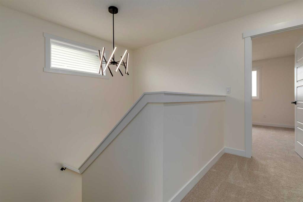 Welcome to this stunning newly built ½ duplex in the peaceful and growing town of Didsbury, where small-town charm meets modern living. Your new home was expertly constructed by Trailmark Homes, thoughtfully designed with no expense spared! This home is packed with high-end finishes, unique architectural touches, and smart construction upgrades that make it a standout in its class. Step inside and you’ll immediately notice the attention to detail. The main floor features beautiful 6.5mm luxury vinyl plank flooring, sleek black accents, spindle railing, and a wood feature wall in the dining area that adds warmth and character. The living room offers an inviting space with a striking electric linear fireplace surrounded by full-height tile. The spacious powder room includes a full vanity—an elevated and rare touch in similar homes. The designer kitchen is truly impressive, boasting quartz countertops with dramatic waterfall edges on the island, a stylish two-tone cabinet design with painted MDF uppers and melamine lowers, full-height cabinets, soft-close drawers and doors, and a massive walk-in pantry. High-end Samsung Bespoke AI Home appliances make this space as functional as it is beautiful. Upstairs, you’ll find three generously sized bedrooms. The primary suite includes a bold black wood feature wall, a large walk-in closet, and a luxurious ensuite with an oversized shower, dual vanities, and anti-fog, LED-lit multifunction mirrors. The additional two bedrooms are bright and well-sized, and the upper floor also features a full main bathroom and a convenient laundry area with Samsung Bespoke washer and dryer included. The basement is undeveloped and offers excellent potential for a future legal suite (subject to town approval). It includes a private side entrance, rough-ins for a bathroom and kitchenette, and full-span floor joists—meaning there are no posts, allowing for an open and functional layout when finished. This home also includes an Ecobee smart thermostat, upgraded carpet and underlay, Moen faucets throughout, and a driveway constructed with fiberglass rebar to help reduce the chance of cracking. The backyard is spacious and backs onto the high school field, offering a peaceful view and extra privacy. A back deck is already built and includes a gas line, you also get a $500 landscaping credit. The home is also covered by full new home warranty for added peace of mind. Located just 40 minutes north of Calgary, Didsbury is a welcoming and well-serviced community offering schools, shopping, parks, medical facilities, and a golf course—all with the feel of a close-knit town. Whether you're a first-time buyer, investor, or looking for a stylish new home with future suite potential (subject to town approval), this property offers unmatched value, functionality, and style. Don’t miss your chance to own a thoughtfully built, beautifully finished new home in one of Alberta’s most charming small towns. Book your private showing today!