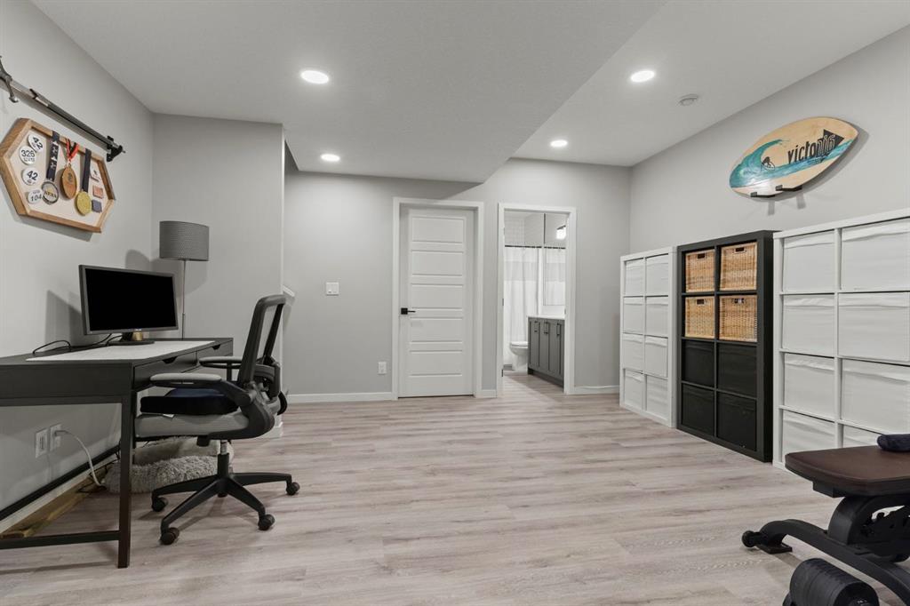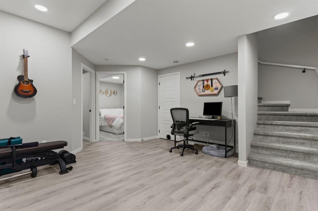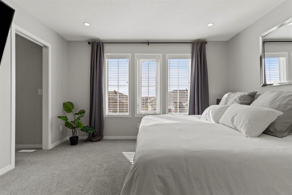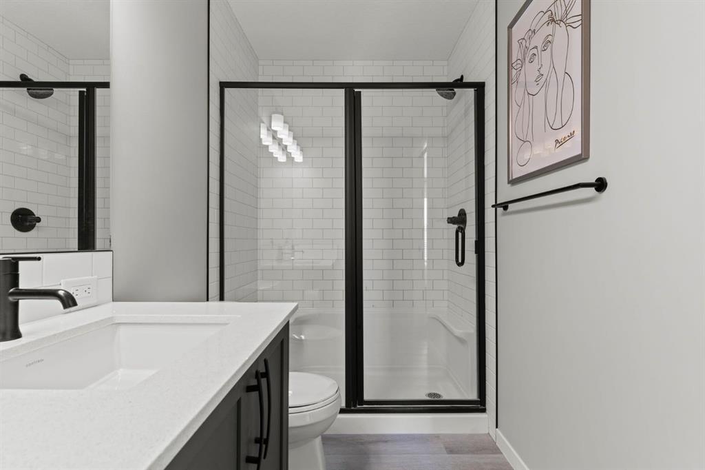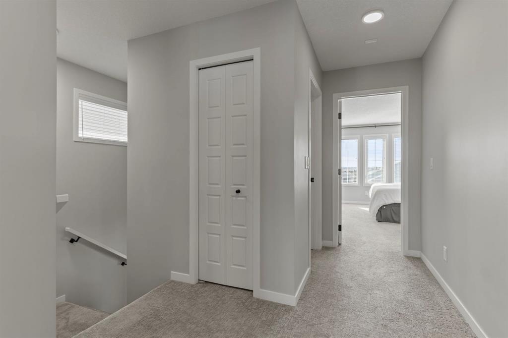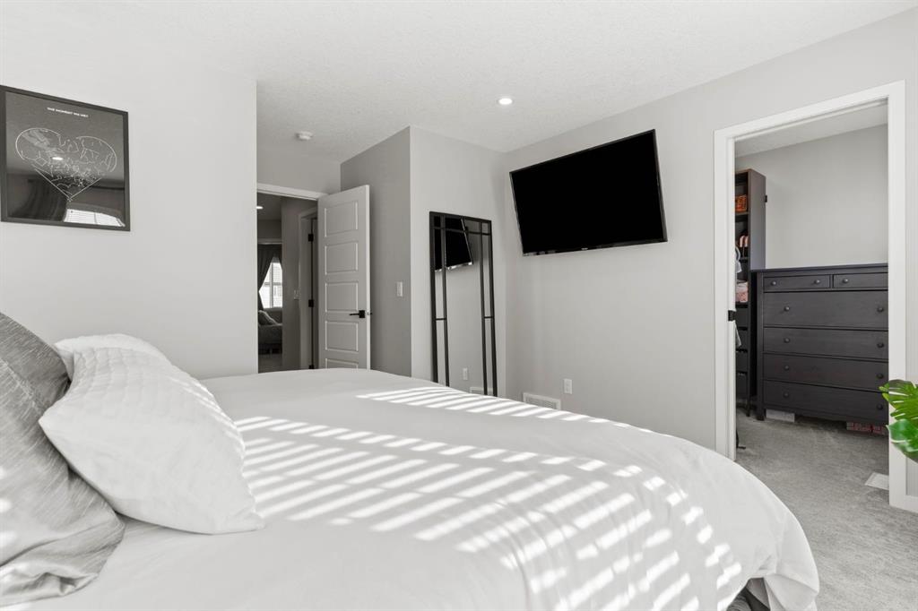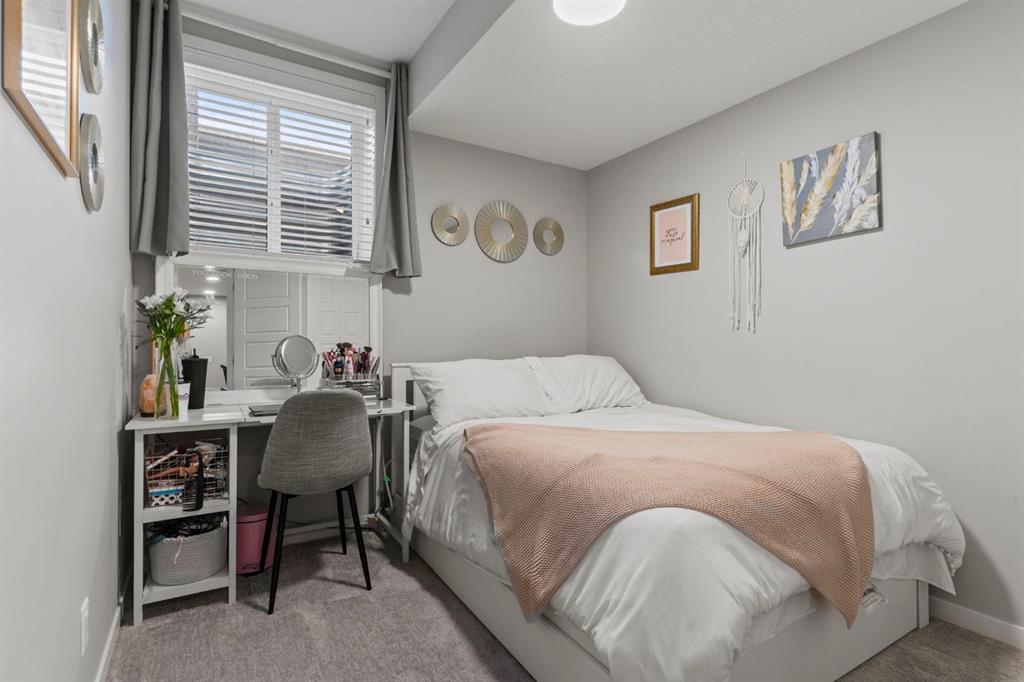 Welcome to this stunning, semi-detached 2-storey home in the sought-after community of Wedderburn in Okotoks -where modern design meets small-town charm. Offering over 2,100 sq. ft. of total living space, this 5-bedroom, 3.5-bath home provides exceptional comfort for growing families, busy professionals, or anyone looking for a move-in-ready property that has it all. The stylish and inviting main floor features a bright and open layout with large windows that fill the space with natural light. The designer kitchen combines beauty and performance showcasing quartz countertops, upgraded stainless steel appliances including a gas range and ceiling -height cabinetry. The central island is perfect for casual meals or for ease in entertaining and there is a spacious dining area creating an ideal gathering space for family and friends. A convenient 2 pce powder room and versatile back entry space with built in bench and hooks complete the main level. Upstairs, you’ll find three comfortable and spacious bedrooms, including the warm and welcoming primary retreat complete with a convenient walk-in closet for all your storage needs. The ensuite offers thoughtful touches with dual sinks, a large stand-up shower, and warm modern finishes — the perfect start and end to your day. A full main bath and upper-level laundry add everyday functionality. The basement is fully finished and expands your living options with a cozy family room, two additional bedrooms, and a 4-piece bathroom perfect for guests, teens, or a home office setup. Step outside and enjoy your private low-maintenance backyard oasis, highlighted by a stamped concrete patio, charming pergola with café lights, and a hot tub for year-round relaxation. There’s no grass to mow, just space to unwind and entertain in your backyard oasis. The property also features air conditioning for summer comfort and a double detached garage off the back lane for parking and storage options. You are ideally located close to community walking paths, playgrounds, and the many amenities that Okotoks has to offer, this home truly combines modern living with community warmth.