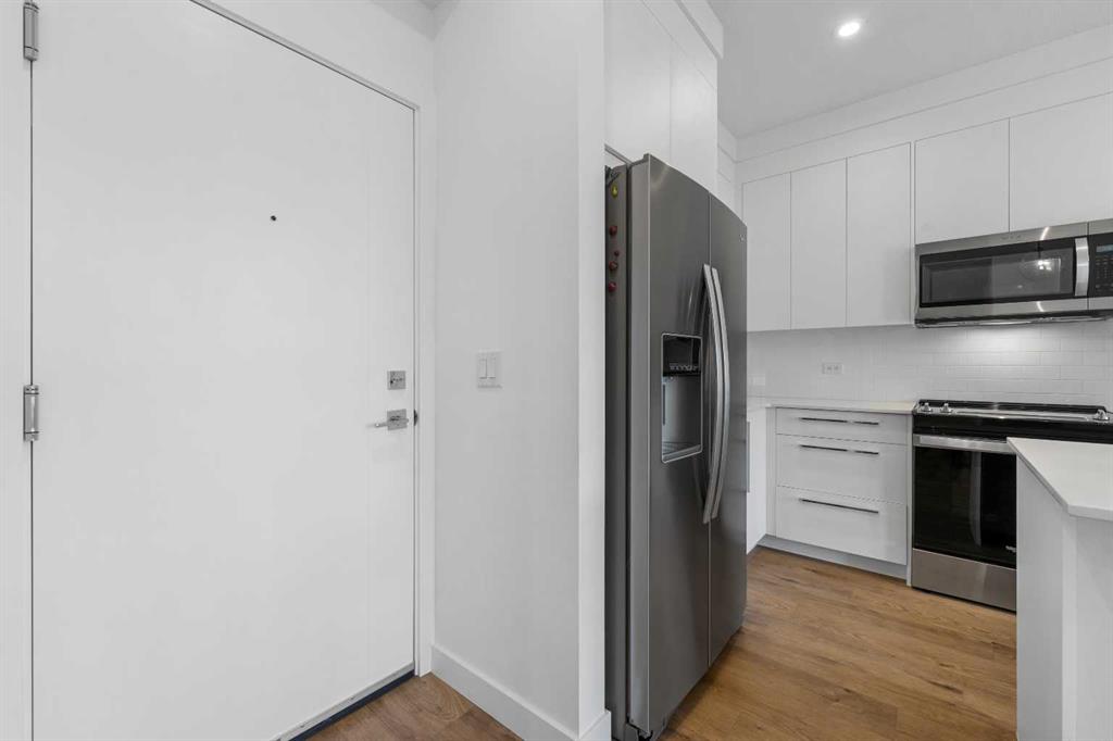 Welcome home!! 2024 Build –Heated Underground Titled Parking + Storage Locker | Pet Friendly | 2 Bed + Den + 2 Bath | Pet Spa & Party Room Welcome to Wolf Willow, a vibrant new community where modern living meets natural beauty, nestled alongside the picturesque Bow River. This thoughtfully designed TOP floor unit offers the perfect blend of sophistication, comfort, and convenience, making it ideal for professionals and families alike. With easy access to major roads, schools, golfing and shopping, Wolf Willow provides a lifestyle that balances urban convenience with the tranquility of nature — whether you're exploring scenic trails, relaxing at the playgrounds, or taking a peaceful walk along the river. Step inside to high ceilings and a spacious foyer with a convenient front hall closet, leading to a versatile den — perfect for a home office, gym or creative space. The kitchen is a chef’s dream, featuring high-end stainless steel appliances, quartz countertops, and an abundance of full-height soft-close cabinetry, including a pantry for extra storage. The kitchen island is the perfect spot to pull up a stool for breakfast or host an evening with friends/family. The open-concept living area with high end vinyl plank flooring is designed for entertaining, with bedrooms strategically placed on opposite sides for added privacy. The master suite is a serene retreat, complete with a generous walk-in closet and a beautifully finished three-piece ensuite. The well-sized second bedroom is located near the elegant four-piece bathroom and full size in-suite laundry for ultimate convenience. Step onto your private west balcony, perfect for morning coffee or simply soaking in the fresh air. This top floor unit leads to extra privacy and views in every direction. Wolf Willow is a brand new southeast family-friendly community designed for nature lovers! With an off-leash park, Bow River walking trails, and fish creek park mere minutes away, its the perfect blend of amenities and nature. Nearby schools are covered with Public & Catholic, Christian Academy and Private all within 10-18 minutes. You’re 5 min to Stoney Trail & Macleod Trail, 13 min to LRT station & just steps to a bus stop for an easy commute. Everyday amenities like groceries, fitness centres and the movie theatre all within a ten minute drive. Book your showing today, and come see why we are all raving about this new SE community.