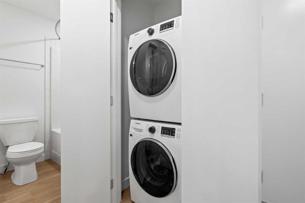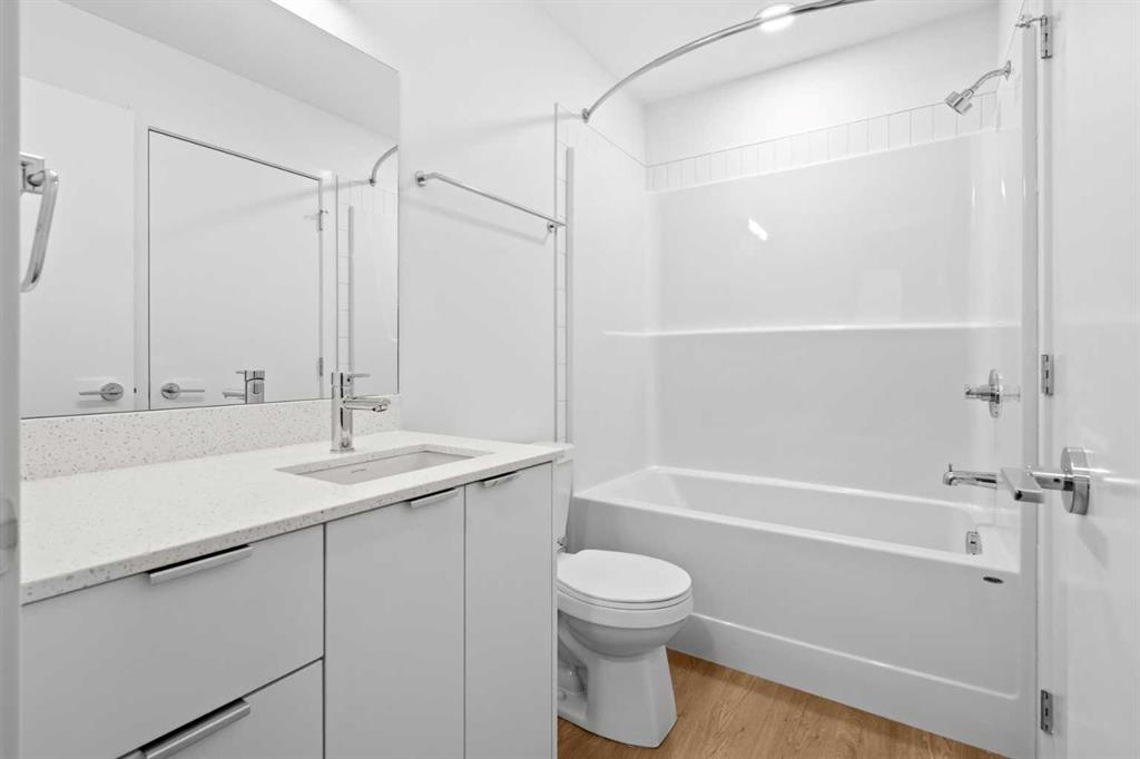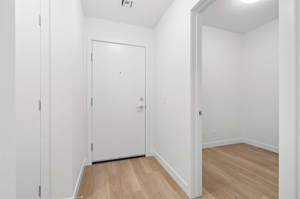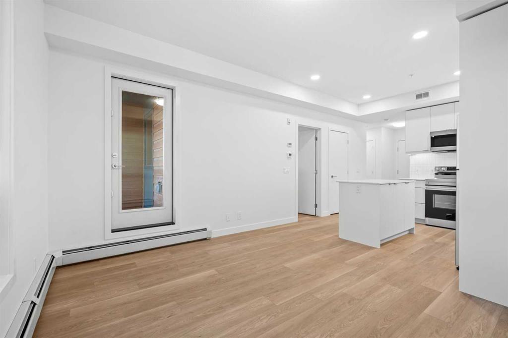 BRAND NEW | 1 BED + DEN / 1 BATH / 552 SQ FT | MODERN FINISHES | LOW CONDO FEES | TITLED PARKING – Welcome to East Hills by Minto Communities, an award-winning Canadian builder with over 70 years of experience. This condo complex is located in the growing community of Belvedere, just steps from East Hills Shopping Centre. Designed to foster a true sense of community, East Hills features pedestrian pathways, nearby greenspace, and a walkable, neighbour-friendly layout. Enjoy unbeatable convenience with Costco, Walmart, banks, restaurants, and everyday essentials right across the street, along with quick access to major roadways and public transit for an easy commute downtown or around the city. This brand-new 1 bedroom plus den, 1 bathroom condo offers a smart and functional layout with 614 sq ft of well-designed living space and modern finishes throughout. As you enter the home, you’ll find a versatile den located at the front left of the unit—ideal for a home office, workout space, or additional storage. The kitchen is centrally located within the home and features a large island, stainless steel appliances, ample cabinetry, and contemporary finishes, making it both stylish and practical. The open-concept design flows seamlessly into the living area at the back of the home, where large windows and direct access to the private balcony create a bright and inviting space—perfect for relaxing, entertaining, or enjoying summer evenings. The bedroom is conveniently located just off the kitchen and offers a comfortable retreat, complete with a walk-in closet. The walk-through closet leads into the bathroom, which also provides access from the foyer for added convenience. In-suite washer and dryer are located here as well, maximizing efficiency without sacrificing space. Additional highlights include titled parking, a pet-friendly building (with restrictions), access to an on-site fitness centre located in Building 3000, and a rooftop patio in Building 1000—both available to all residents—enhancing the lifestyle appeal of this low-maintenance home. With modern design, low condo fees, and an exceptional location, this is an excellent opportunity for first-time buyers, investors, or those looking to downsize in one of southeast Calgary’s most convenient communities. Contact Minto’s sales staff and book your visit today!
