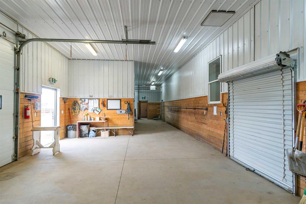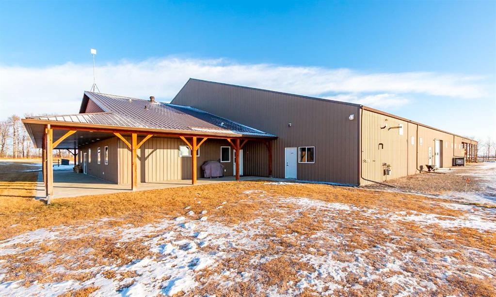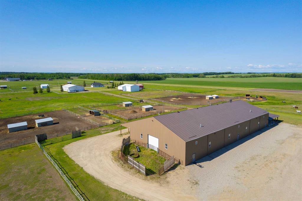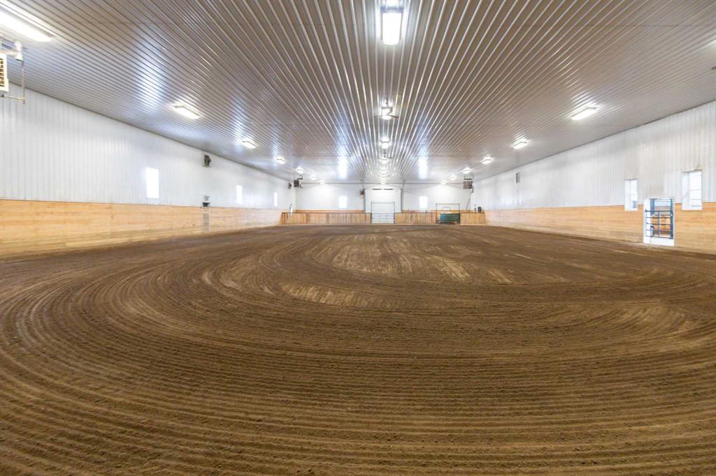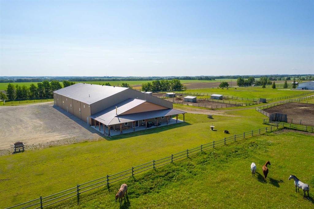 Welcome to this immaculate 153-acre property in Red Deer County, just 12 minutes NW of Olds, less than an hour to Calgary and 30 minutes to Red Deer. The main home is a 1,667 sq ft bungalow with a double heated attached garage. Inside, you’ll find three bedrooms on the main floor, including a spacious primary suite with a four-piece ensuite, plus another full bathroom and a well-appointed laundry room with access to the garage. The open-concept kitchen, dining, and living area is bright and inviting, with large windows offering stunning views from every angle. The kitchen features warm wood cabinetry and a large island, while the living room adds a cozy charm with its wood-burning stove. Hunter Douglas blinds are installed throughout for comfort and efficiency. A screened-in sunroom with a patio door and fully opening windows provides a peaceful space to enjoy the views and all four seasons. The finished basement includes another bedroom, a three-piece bathroom, a large rec room and a hobby room. There is in-floor heat in the basement, instant hot water, and a 50-gallon automatic water heater. The home also has A/C. Equestrian or livestock amenities include a professionally built, insulated and heated 80x180 INDOOR RIDING ARENA with humidity control, four forced-air heaters, a 14x14 overhead door and air circulation fans. The arena ground footing was professional done. A roll-up door connects to the 20x120 BARN with in-floor and overhead heat , four soft-cushioned stalls, a wash bay, large tack room with a sink, and built-in saddle racks. A 20x60 lean-to adds more storage and shelter. The arena is monitored by seven professionally installed, Wi-Fi-compatible security cameras. Attached to the arena is a beautiful 1,701 sq ft home with a full wraparound veranda. It offers two bedrooms, including a generous primary suite with a five-piece ensuite and a massive walk-in closet, plus an office with a window overlooking the arena. The kitchen offers abundant cabinetry and a central island, while the dining area features patio doors and the living room boasts another cozy wood stove. A spacious mudroom/laundry room and ample storage throughout make this home as practical as it is charming. Outbuildings include a partially heated 60x90 SHOP, a heated 30x36 MAIN BARN with two stalls—one convertible to a foaling stall with a camera monitor—and a heated tack room with hot and cold water. The massive 70x43 hay shed holds up to 300 large square bales. Aviation lovers will appreciate the 42x36 airplane hangar with a bi-fold door, a tower and a private runway stretching nearly the full length of the quarter. The land is thoughtfully fenced with all-rail fencing—NO BARBED WIRE—and includes a mix of pasture and paddocks, including introduction pens, automatic waterers, and 2 OUTDOOR RIDING ARENAS. There are also 3 high producing water wells on the property. Approximately 80 acres of cultivated farmland with two dugouts complete this versatile and truly impressive property.