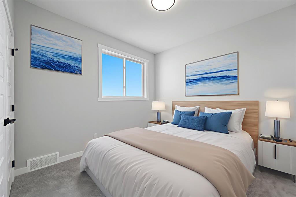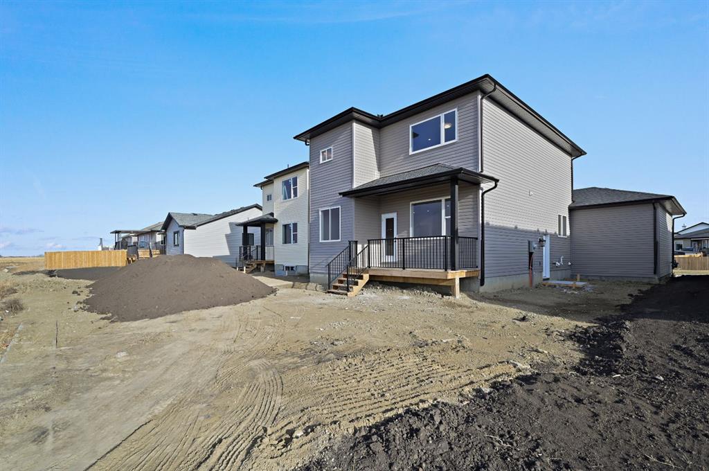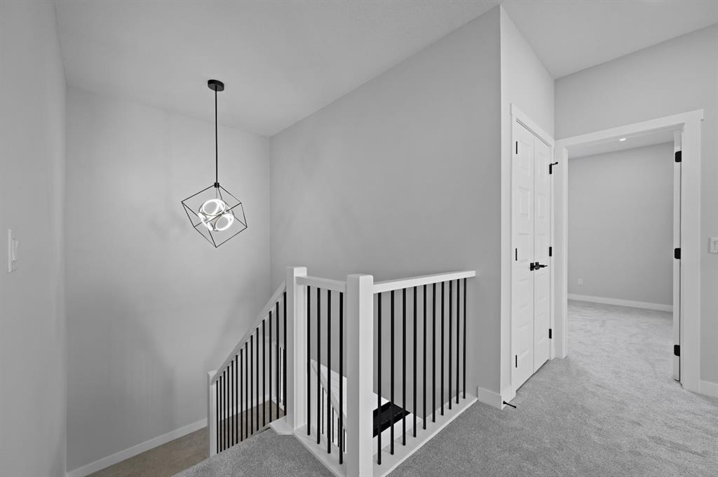 Welcome to this stunning 3-bedroom plus den, 2.5-bathroom home designed with style, comfort, and versatility in mind. From its neutral tones to its high-end finishes, every detail reflects modern craftsmanship and thoughtful design. Step inside to an inviting open-concept main floor featuring luxury vinyl plank flooring and an impressive white wood-accented wall in the family room, complete with a large remote-controlled electric fireplace and built-in speakers. The chef’s kitchen showcases white quartz countertops, elegant white tile backsplash, and contemporary cabinetry — a perfect blend of simplicity and sophistication. A bright dining area with a modern LED chandelier adds a touch of glamour, while the den with double doors provides the perfect space for a home office or guest bedroom. Upstairs, an extra-wide staircase leads to the spacious bonus room — ideal for movie nights or relaxing evenings — featuring another elegant white accent wall. The primary suite is a true retreat, boasting large windows, a generous walk-in closet, and a luxurious 5-piece ensuite with dual sinks, a soaker tub, and a striking white-and-black tiled shower. Two additional bedrooms offer ample space and natural light, complemented by soft, plush carpeting and a convenient upper-level laundry room. The home also offers a side entrance with income potential, and the basement includes rough-ins to easily add two more bedrooms in the future. Thoughtful touches like black Moen fixtures throughout elevate the home’s luxurious feel. The triple attached garage comes equipped with gas and electrical hookups, ready for heat — perfect for Alberta winters. This home truly balances modern beauty, smart design, and functional living — ready for your family to move in and enjoy.