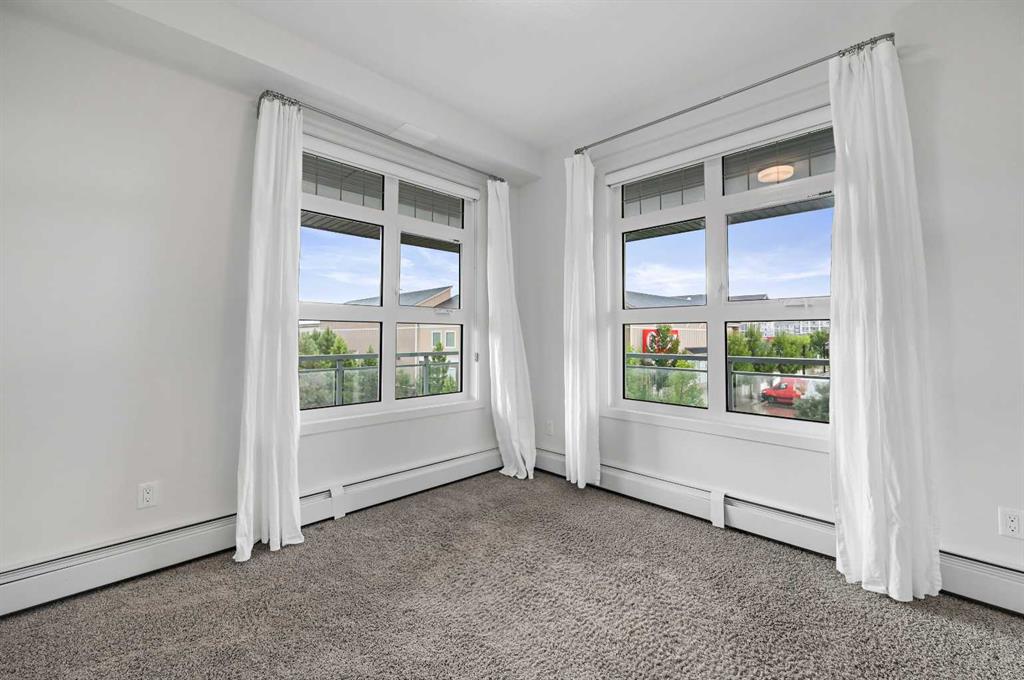** NEW PRICE ** Canoe at Auburn Bay - Top Floor Corner Model with Courtyard Views - Quick Possession!! Unbelievable VALUE & DESIGN! The superb condo offers two bedrooms, two bathrooms, a titled indoor parking stall, extra tall windows, a 190 SF covered balcony, and high 9' ceilings. Value Added features – City of Calgary the 2025 Property Assessment is $435,000 ... Check and Compare; 942 RMS sq. ft. of luxurious living space. Loaded with extras... Luxury wide plank engineered flooring, dual pane Low-E windows, modern white painted casings, doors & baseboards, white decora light switches, convenient laundry with storage & stacked washer/dryer. Whirlpool Stainless steel appliance package: fridge with freezer below, OTR microwave, smooth top electric cooktop, and quiet Energy Star-rated tall tub dishwasher. Upgraded Kitchen cabinets with tall upper doors + soft-close drawers + extra floor cabinets + moldings with under-cabinet lighting, quartz island countertops, undermount dual-basin stainless steel sink, full-height glass tile backsplash, pull-out kitchen faucet, dramatic peninsula island with flush eating bar, and room to sit 4. BONUS features: supersized front foyer and private entry! Auburn Bay, a lake lifestyle amenity beyond compare - Central Beach site is the home of the community’s grand beach area, where residents have exclusive access to sandy beaches, a splash park, tennis courts, play equipment, a fishing pier and non-motorized marina, indoor and outdoor fitness equipment, barbeque pits, a hockey rink and more. The Beach area hosts various activities, including educational and recreational programs, meetings, and private functions. Purposefully designed as the focal point for the community, the Beach area also includes a dedicated skate room and multiple meeting rooms; as a gathering place that will be beloved for generations, the lake is a place of shared laughter and joy, where neighbors gather year-round to enjoy the best of four-season lake living. Call your friendly REALTOR(R) to book a viewing!