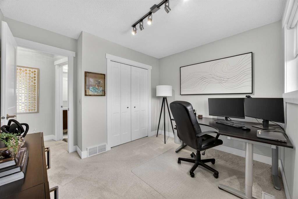 If you’ve been searching for a move-in ready home where the work is already done, this beautifully renovated two-story in the established community of Woodside delivers exceptional value, style, and everyday livability. Set on a mature lot with beautiful landscaping and a sunny south-facing backyard, this home is designed for both relaxation and entertaining. Step outside to enjoy the large deck and patio area, perfect for summer BBQs, morning coffee in the sun, or hosting family and friends. The yard is fully fenced, offering privacy and space for kids or pets to play. Inside, the home has been completely renovated from top to bottom, creating a modern and cohesive living environment. Fresh paint, updated flooring including luxury vinyl plank, new doors, baseboards, casings, and updated electrical fixtures give the entire home a clean, modern feel. The fully renovated kitchen is the heart of the home, featuring updated modern white cabinetry, granite countertops, stainless steel appliances, and a layout that flows seamlessly into the eating area and living room. The open concept design makes everyday living easy while creating an inviting space for gatherings. A cozy gas fireplace anchors the living room, adding warmth and character. Functionality is another standout feature. The main floor offers a front flex room that works beautifully as a sitting room or formal dining area, along with a dedicated main floor office or den. Perfect for working from home or managing daily life. Upstairs, you’ll find three bedrooms, including a stunning primary suite with a fully renovated spa-inspired ensuite complete with a freestanding soaker tub. The main bathroom has also been fully renovated and features an oversized glass and tile shower, providing a modern and luxurious feel for family or guests. The fully finished lower level continues the renovation theme, offering a large family room for movie nights, kids’ play space, or relaxing evenings, along with a second office area that could easily function as a hobby room, exercise space, or study area. Beyond the home itself, the location adds even more value. Woodside is a mature and welcoming community centered around the beautiful Woodside Golf Course. Residents enjoy quiet streets, parks, walking paths, and convenient access to schools, shopping, and everyday amenities throughout Airdrie. With quick connections to Calgary, it’s a community that balances peaceful neighborhood living with convenient access to the city. With extensive renovations already completed, flexible living spaces, a sunny backyard, and a fantastic community setting, this home offers a rare opportunity to move in and simply enjoy everything it has to offer.