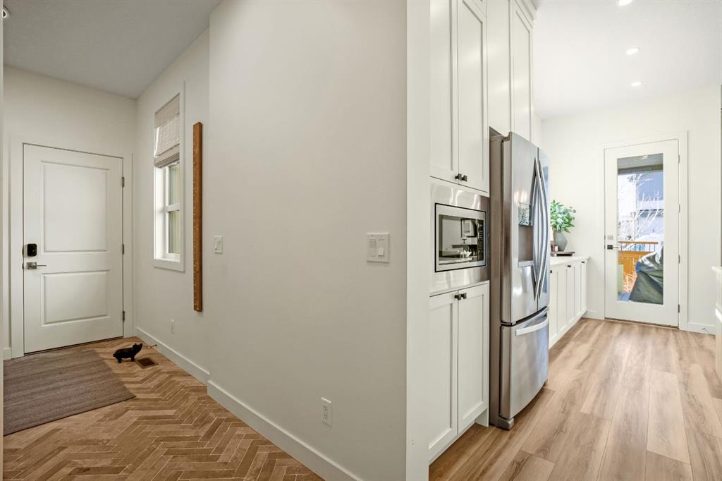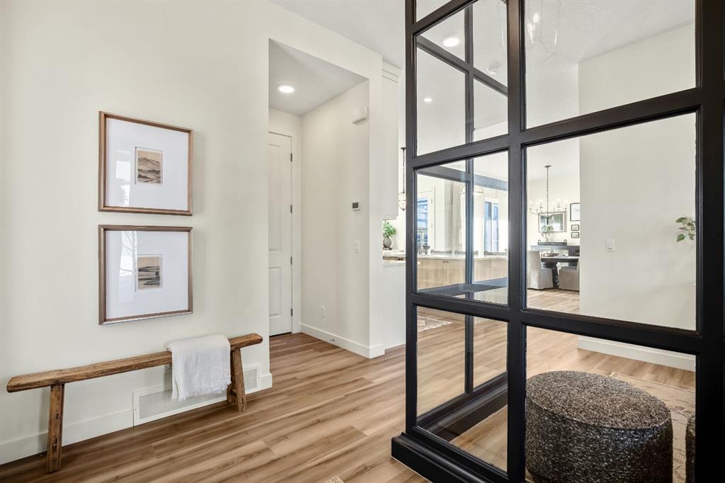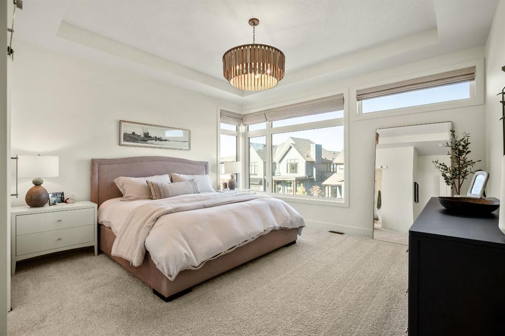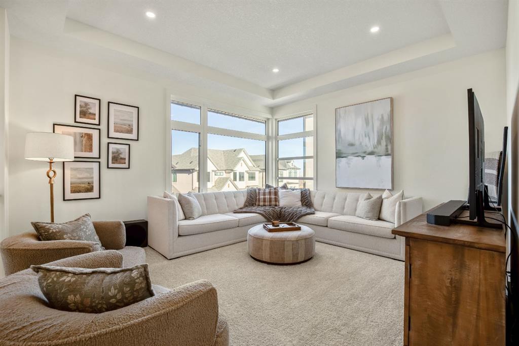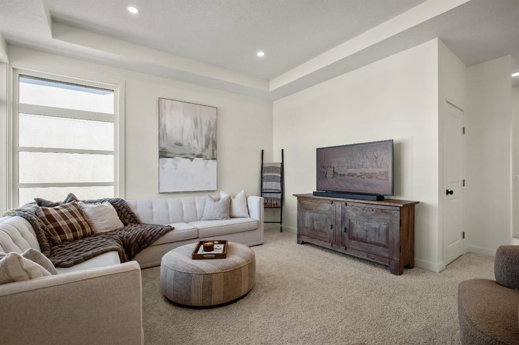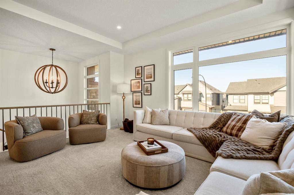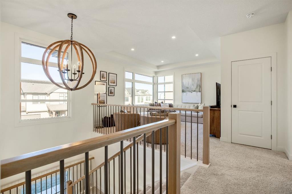 Experience the essence of luxury living in this exquisite home. Situated in the highly desirable community of Alpine Park. As you approach this residence on an oversized corner lot you will notice the great curb appeal, gemstone lights, and welcoming front porch. In like-new condition, this stunning custom-built home offers over 2,600sq. ft, an OVER SIZED TRIPLE CAR HEATED GARAGE, a South-facing fully landscaped yard with irrigation, and extensive upgrades throughout. The sophisticated design boasts soaring 10-foot ceilings on the main-floor. Highlighted by an expansive chef’s kitchen. Complete with ceiling-height shaker-style cabinets, soft-close doors and drawers, high-end upgraded appliances, and gorgeous stone counters. Around the corner is a separate coffee space, large pantry for additional storage, and mudroom leading to your convenient TRIPLE ATTACHED HEATED GARAGE with an additional bay for storage, EV ready rough-in and 220-amp service. There is direct access off the kitchen to your large low maintenance TREX deck and sun-drenched, South facing yard. The kitchen seamlessly transitions to the elegant well sized dining area with a floor to ceiling patio sliders leading to the deck creating a great indoor-outdoor space. Adjacent is the grand living room accentuated by a gas fireplace adorned with a wood mantle and millwork detail. The main level is completed with an office or playroom and a convenient powder room. As you head upstairs notice the airy open riser staircase and elegant railing. This opens to a generous family room creating a versatile space for relaxing, watching movies, or spending quiet evenings together. There are 9-foot ceilings throughout this level, which includes two well sized bedrooms, a 5pc main bath with stone counters, and a convenient upper-level laundry room with sink rough in, all situated away from the Primary retreat. The primary retreat serves as a tranquil sanctuary, boasting a tray ceiling detail, walk-in closet, and luxurious ensuite, complete with a freestanding soaking tub including MOUNTAIN VIEWS, a generously sized fully tiled shower, and a private water closet. The unfinished lower level is ready for your creativity with oversized windows, 9’ ceilings, bathroom and bar rough ins. Enjoy the comforts of air conditioning, custom drapes, designer lights, upgraded plumbing fixture, and triple pane windows. Easy access to the mountains, via Stoney trail, downtown 20 minutes away, and 5 minutes to Costco and shopping This estate home is a rare find with no neighbour beside you. Don’t miss this opportunity—schedule your private showing today or explore the virtual tour!