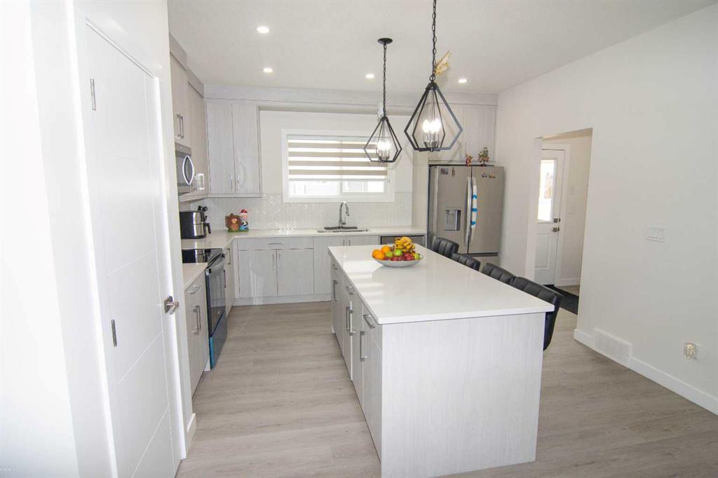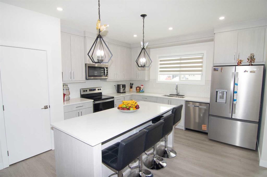Welcome to your dream home in Midtown ! This unique 2025 construction 5-bedroom, 3.5-bath gem offers the perfect blend of modern elegance and comfort, designed to meet all your family's needs. As you step inside, you'll notice the thoughtful layout, featuring a main floor flex room, ensuring convenience and flexibility for multi-generational living or a home office space. One of the standout features is the private primary suite, offering a luxurious retreat within your own home. The home boasts 9-foot ceilings on both the basement and main floor, amplifying the sense of space and offering a bright and inviting ambience throughout. The side-entrance to the full finished 2 bedrooms basement further enhances the potential for this home. The basement also comes with the 4 pc bath, laundry and its own kitchen. Located in the heart of Airdrie, this stunning home offers the peace and privacy you desire. The property is in close proximity to a school, making it perfect for families with children. Don't miss this incredible opportunity to own a never-lived-in home with unique features and a prime location.