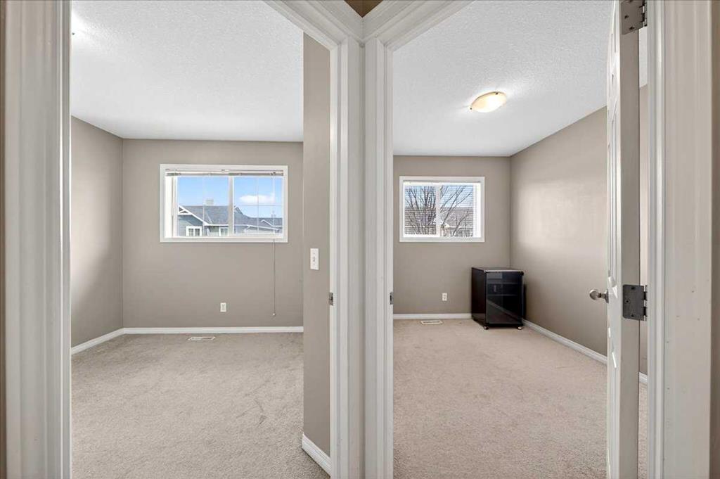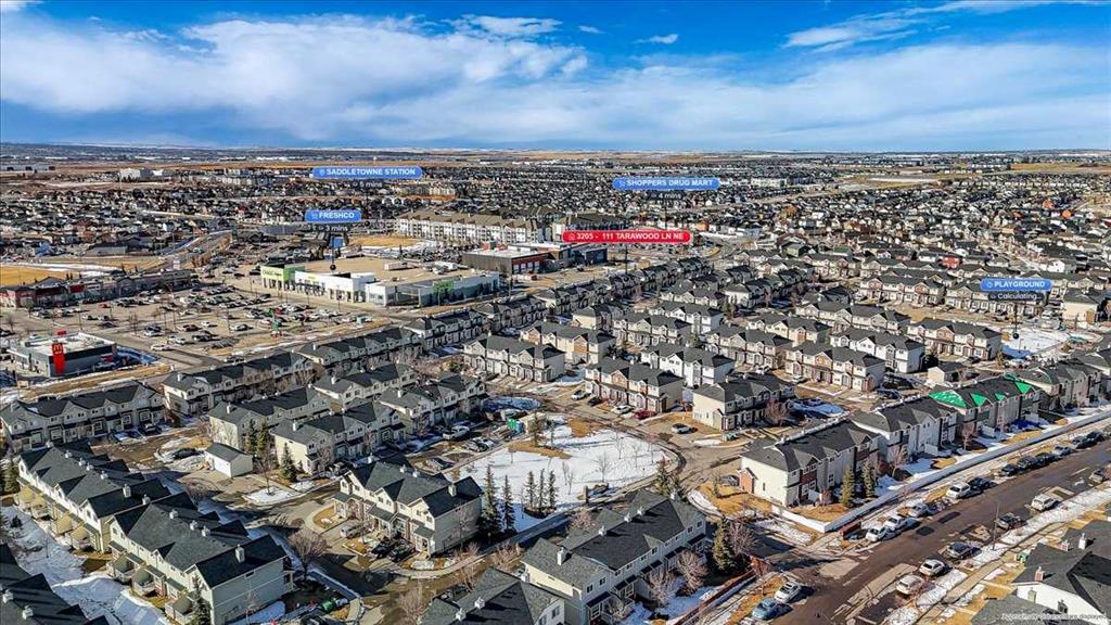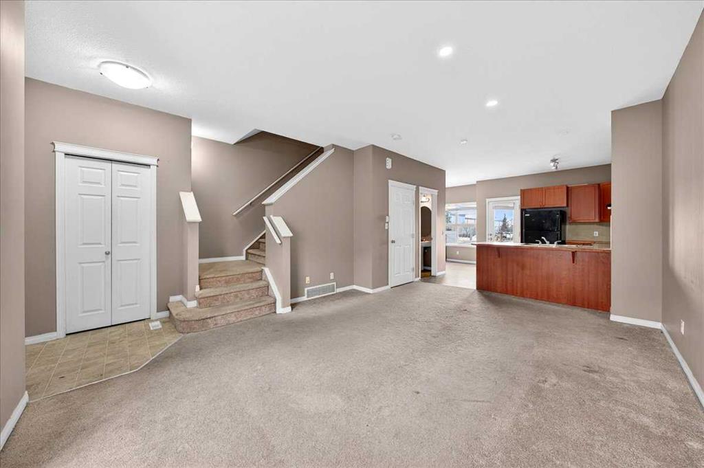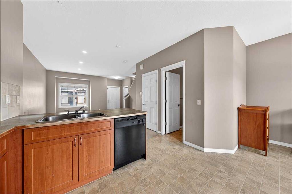 Welcome to Tarawood Hollow, where this bright and inviting home offers a functional layout and an excellent opportunity for buyers looking to add their own personal touch. Large east- and west-facing windows fill the main level with natural light, while the 9-foot ceilings enhance the open and airy feel throughout the space. The main floor features an open-concept design, allowing family and guests to gather comfortably in the living room while meals are prepared in the kitchen, complete with ample counter space, black appliances, and a convenient breakfast bar. The dining area offers flexibility for both everyday living and more formal occasions. Upstairs, the spacious primary bedroom includes a walk-in closet and a 3-piece ensuite, while two additional bedrooms provide room for family, guests, or a home office. The unfinished basement includes laundry, storage space, and rough-ins for future development, giving you the chance to customize the lower level to suit your needs. Step outside to the back patio, perfect for summer BBQs, with a playground conveniently located right within the complex. Ideally situated close to schools, shopping, and the Saddle Ridge LRT station, this home is well suited for first-time buyers, downsizers, or investors. While the property does require some TLC and updating, it offers great potential in a convenient location. Book your showing today.