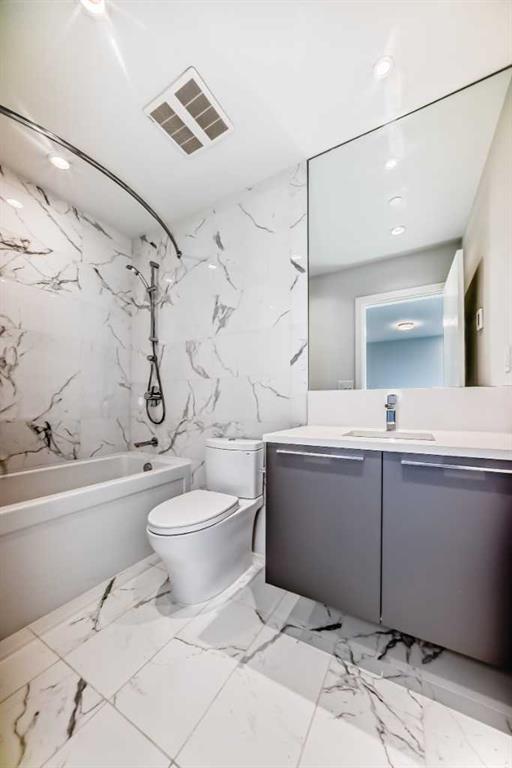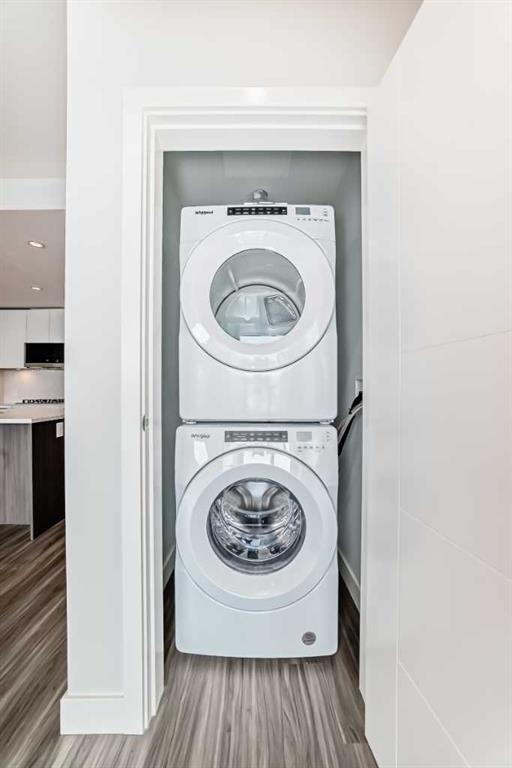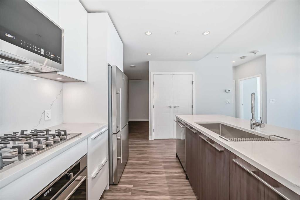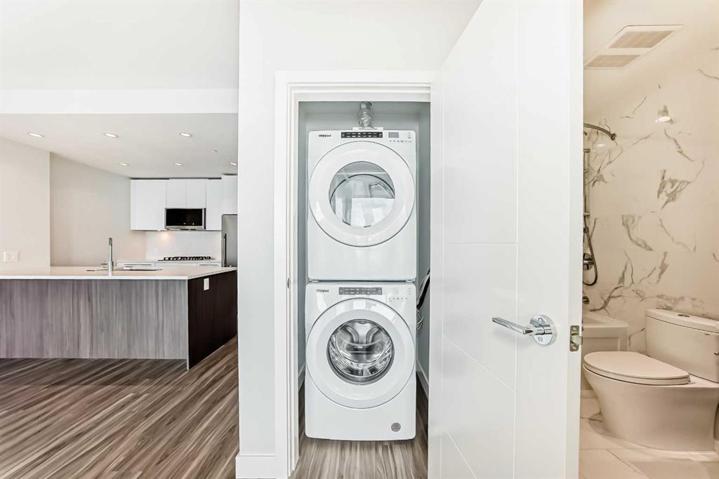 Welcome to Arris Residences! This bright and open 1 bedroom, 1 bathroom + Den home presents an open layout featuring wide-plank luxury vinyl flooring throughout, high ceilings & plenty of natural light, showcasing a generous living and dining area and has excellent access to the large south-facing balcony. The kitchen is open to the living area & is tastefully finished with quartz counter tops, eating bar, lots of storage space & premium European appliances. The primary bedroom has large windows and ample closet space. The well-appointed 3-piece bathroom is filled with high end finishes and a functional deep tub/shower. Additional features include full size in-suite laundry, one assigned underground parking stall (EV options available) & an assigned storage locker. Within the building, the modern structure houses a wealth of amenities centered around 'Club Arris,' offering an impressive 25,000 sq. ft. of both indoor and outdoor facilities. Enjoy our state-of-the-art fitness center equipped with spin, weight, yoga, and TRX options, featuring top-of-the-line fitness equipment that rivals any gym. The four-season indoor heated pool, complete with a hot tub, sauna, and steam room, provides an unparalleled relaxation experience. The social lounge, private dining area, video conferencing rooms, and the lush outdoor terrace serve as the ultimate VIP social spaces, expanding your living area and enhancing your social connections. These executive-style residences sit atop a sprawling podium of essential services, including the new urban-format Real Canadian Superstore, ensuring all your needs are met right at your doorstep. - This is a brand new home so future GST credits would be applicable for first time buyers.