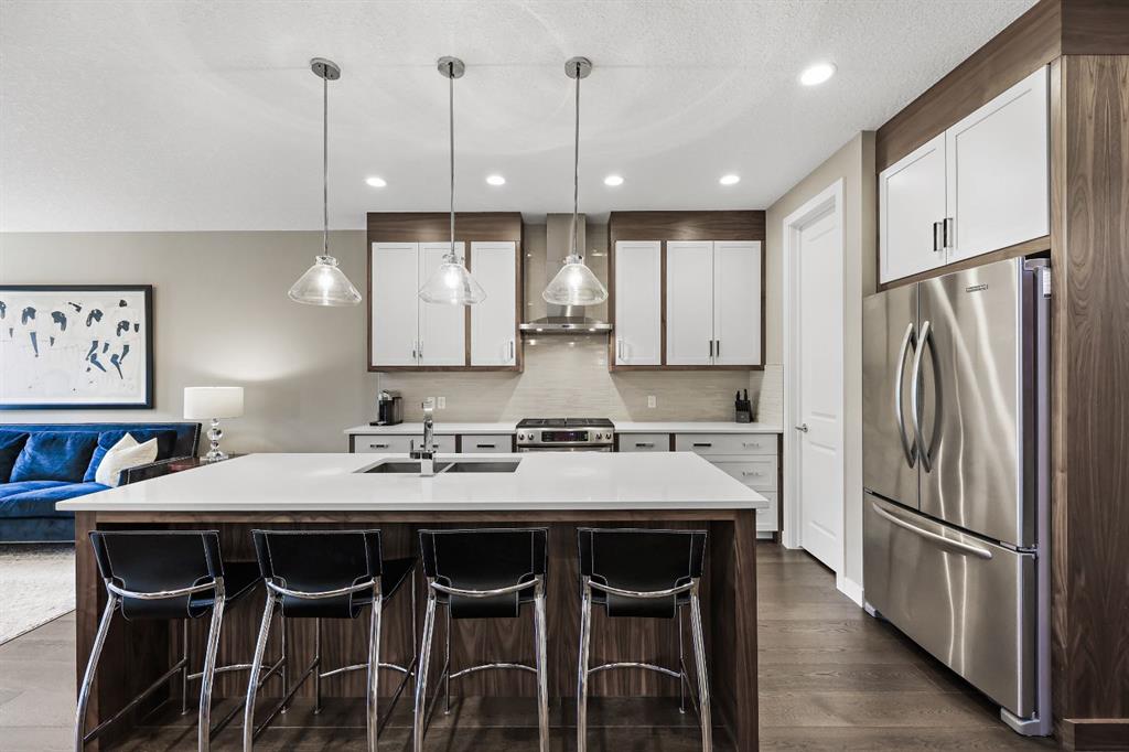 Welcome to this beautifully updated home offering over 2,800 sq ft of developed living space in the heart of Glenbrook, ideally situated on a quiet, tree-lined street in one of Calgary’s most convenient west-side communities. Thoughtfully designed with character and functionality in mind, this home stands apart from typical infills. You’re welcomed by a beautiful open-concept main level that is bright and airy with high ceilings and large windows that fill the space with natural light. This floor has a spacious main floor office, a stunning chef’s kitchen featuring an oversized quartz island, and a rare walk-in pantry with custom wood storage. This floor also features a large designated dining room area, a warm cozy living room with a fireplace, and a much needed back mudroom area complete with a large coat closet. Upstairs, retreat to a spacious primary suite complete with a huge walk in closet, and a luxurious ensuite showcasing dual sinks, a deep soaker tub, and an oversized walk-in shower. Two additional bedrooms, a full bathroom, and a convenient upper laundry room complete the upper level. The fully developed basement expands the living space with a large rec/media area, an additional bedroom, full bathroom, and ample storage — perfect for guests, teens, or a home gym setup. Outside, the professionally landscaped West facing yard creates a private backyard oasis featuring mature trees, custom flagstone patio, low-maintenance turf, and a built-in irrigation system. Additional highlights include central air conditioning, custom hunter Douglas window coverings, an efficient tankless hot water system, and a fully finished double garage with insulation and durable steel cladding. As you walk through this home you will see that it was built with quality and care by Cardel Homes - a long term reputable builder. Modern, warm, and exceptionally well cared for, this home offers elevated inner-city living close to parks, schools, shopping, and quick downtown access.