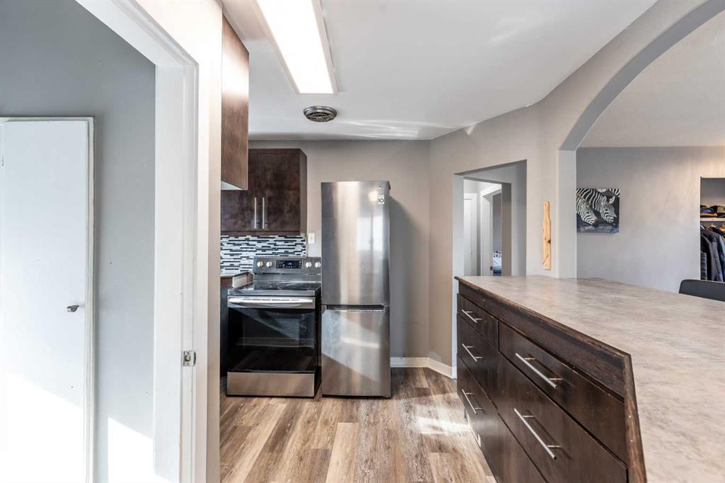 Affordable living on the SW Hill! This 4 bedroom, 2 full bathroom bungalow offers incredible value in a mature, established neighbourhood. Step inside to the open concept main floor featuring updated vinyl plank flooring throughout. The kitchen features newer stainless steel appliances and is open to the living and dining areas. Two comfortable bedrooms and a full four piece bathroom complete the main level. Downstairs, you'll find even more space with two additional bedrooms (both with updated egress window), a second full four piece bathroom, plus a laundry area and storage space. Major updates over recent years include all windows and the front door, siding, interior paint, baseboards and trim - giving this home a fresh, move-in ready feel inside and out. Outside, enjoy a convenient front driveway and large backyard with room to build a future garage or additional parking space. Great curb appeal and an affordable price point, this great SW Hill Bungalow is one you won't want to miss!
