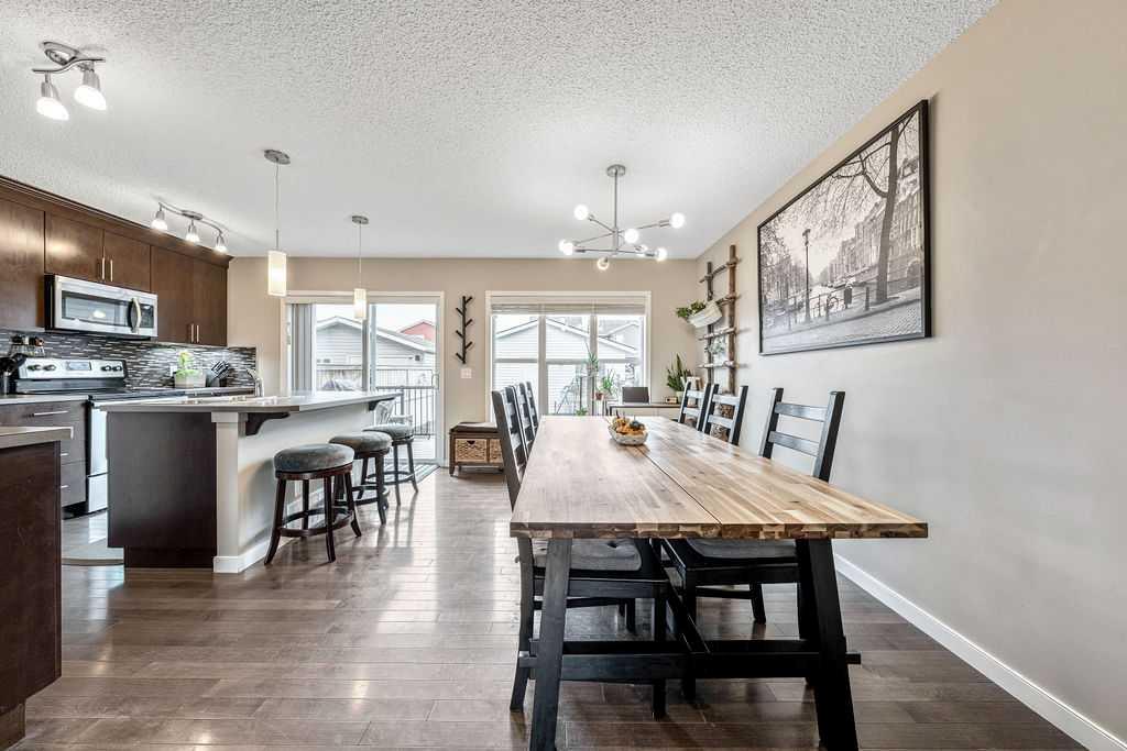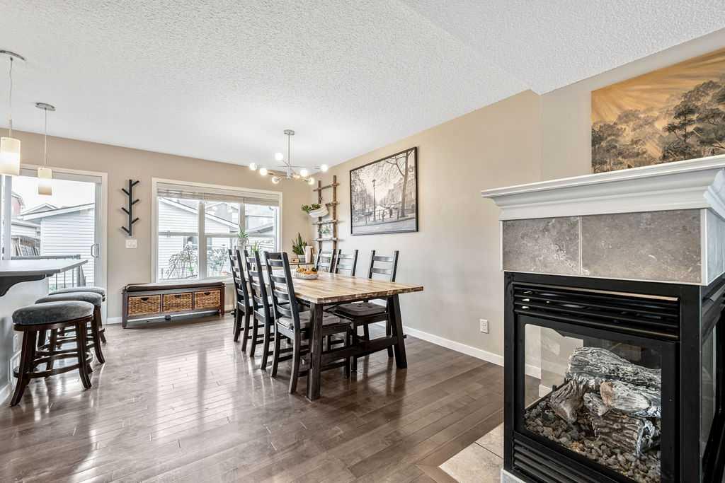 Welcome to this immaculate, air-conditioned 3-bedroom, 3-bath home ideally located across from a school and playground! Step inside to discover a bright, contemporary open-concept layout with large windows that fill the space with natural light. Beautiful hardwood floors flow seamlessly through the spacious living room, featuring a cozy three-sided fireplace, and into the kitchen and dining area. The modern kitchen offers stylish cabinetry, stainless steel appliances, ample storage, and a large center island — perfect for meal prep or entertaining guests. A convenient rear entrance and a half bath complete the main level. Upstairs, you’ll find three generous bedrooms, including a spacious primary suite with a walk-in closet and a private 4-piece ensuite. A second 4-piece bath serves the additional bedrooms. The basement has been professionally framed and wired to the drywall stage by a journeyman electrician (with permits). It features thoughtfully placed recessed lighting, outlets, and switches, plus egress windows and a 3-piece rough-in — offering an excellent opportunity to add value and create the lower level of your dreams. Outside, enjoy the 22’ x 20’ detached garage with access from a clean, paved laneway. Location highlights: • Steps away from a school, playground, and bus stop • Short stroll to two nearby schools and scenic ridge pathways for evening walks - A Fantastic Hall/ Rec Center including a splash park and outdoor rink • Just minutes to South Health Campus, Sobeys, and a variety of shopping and dining options Pride of ownership is evident throughout — this home is move-in ready and waiting for you! Don’t miss your chance to make it yours. Book your showing today!