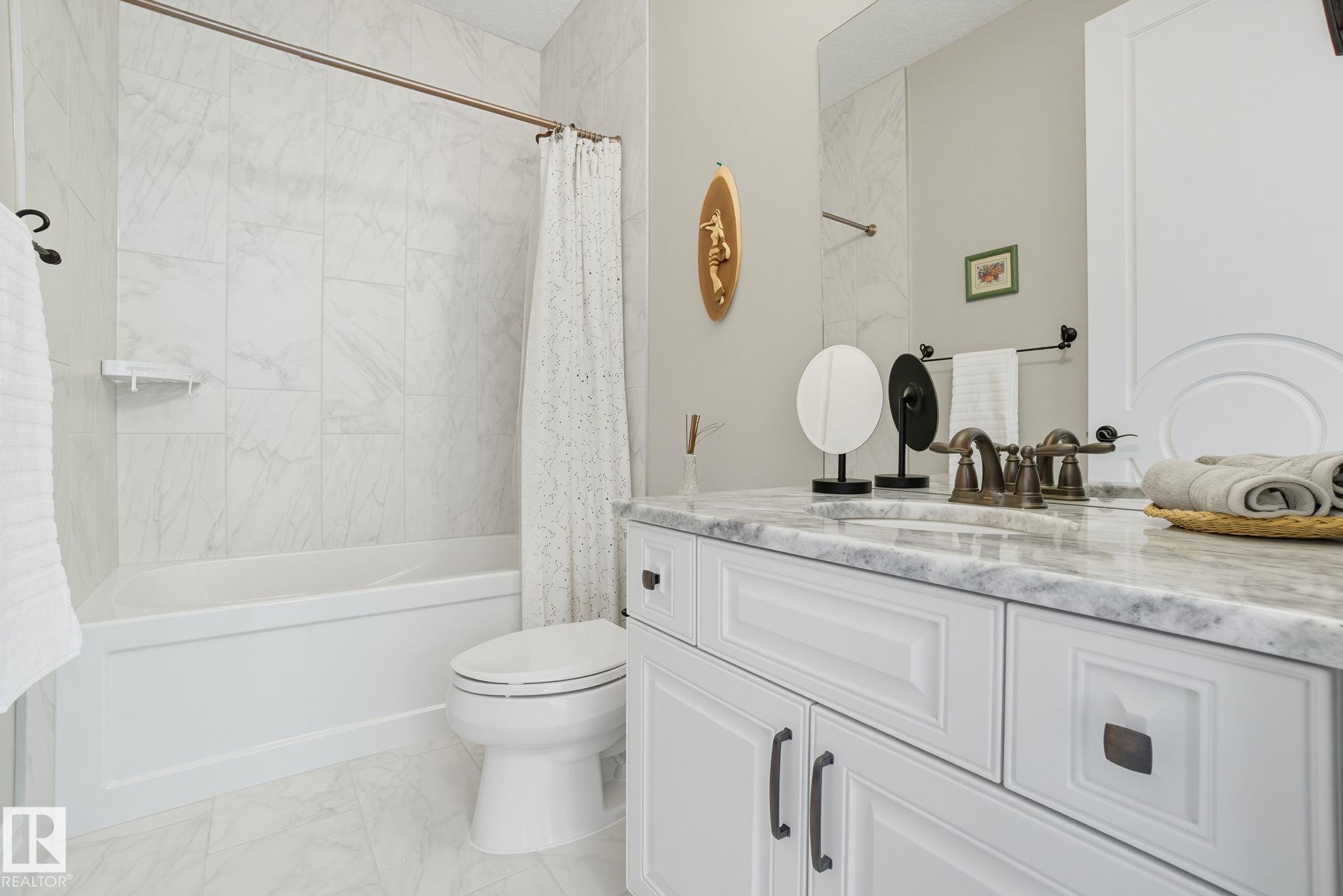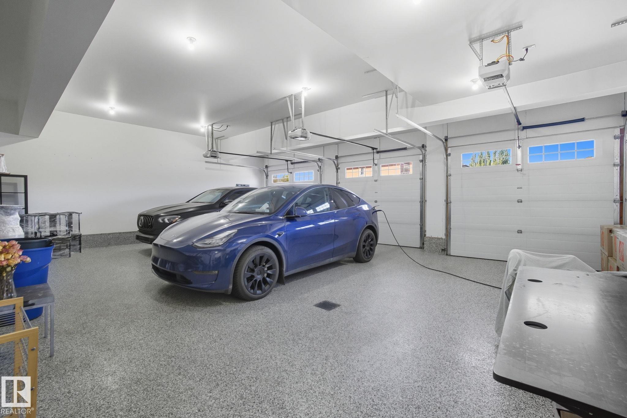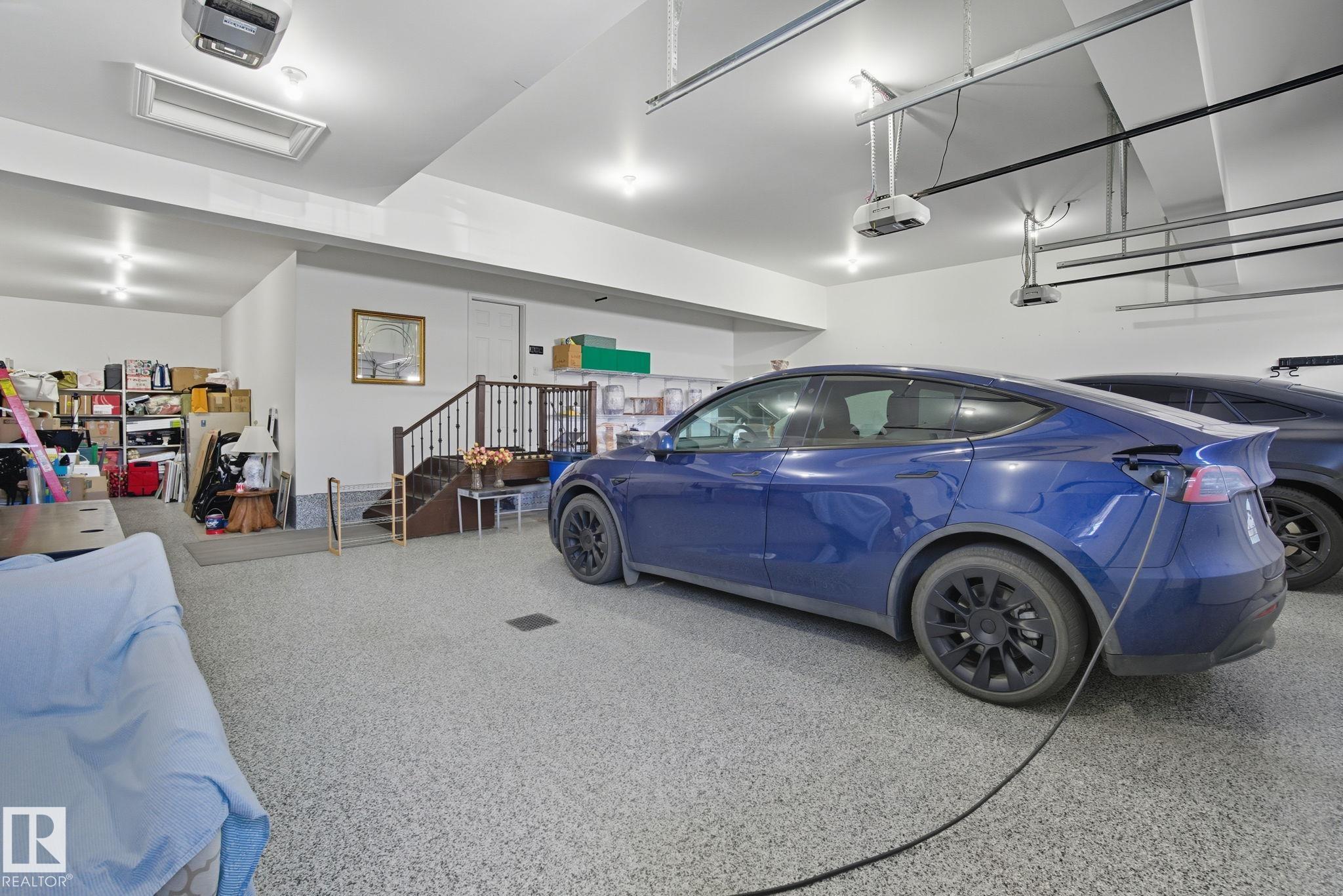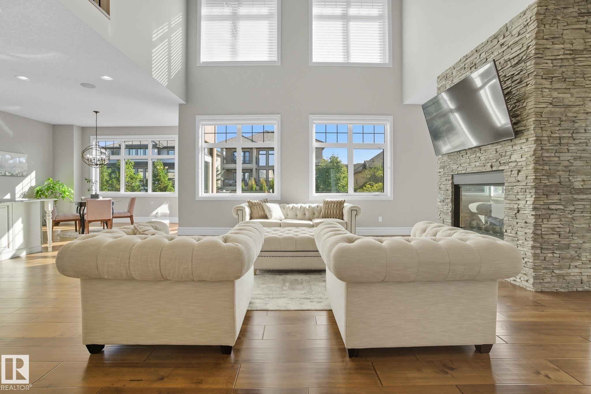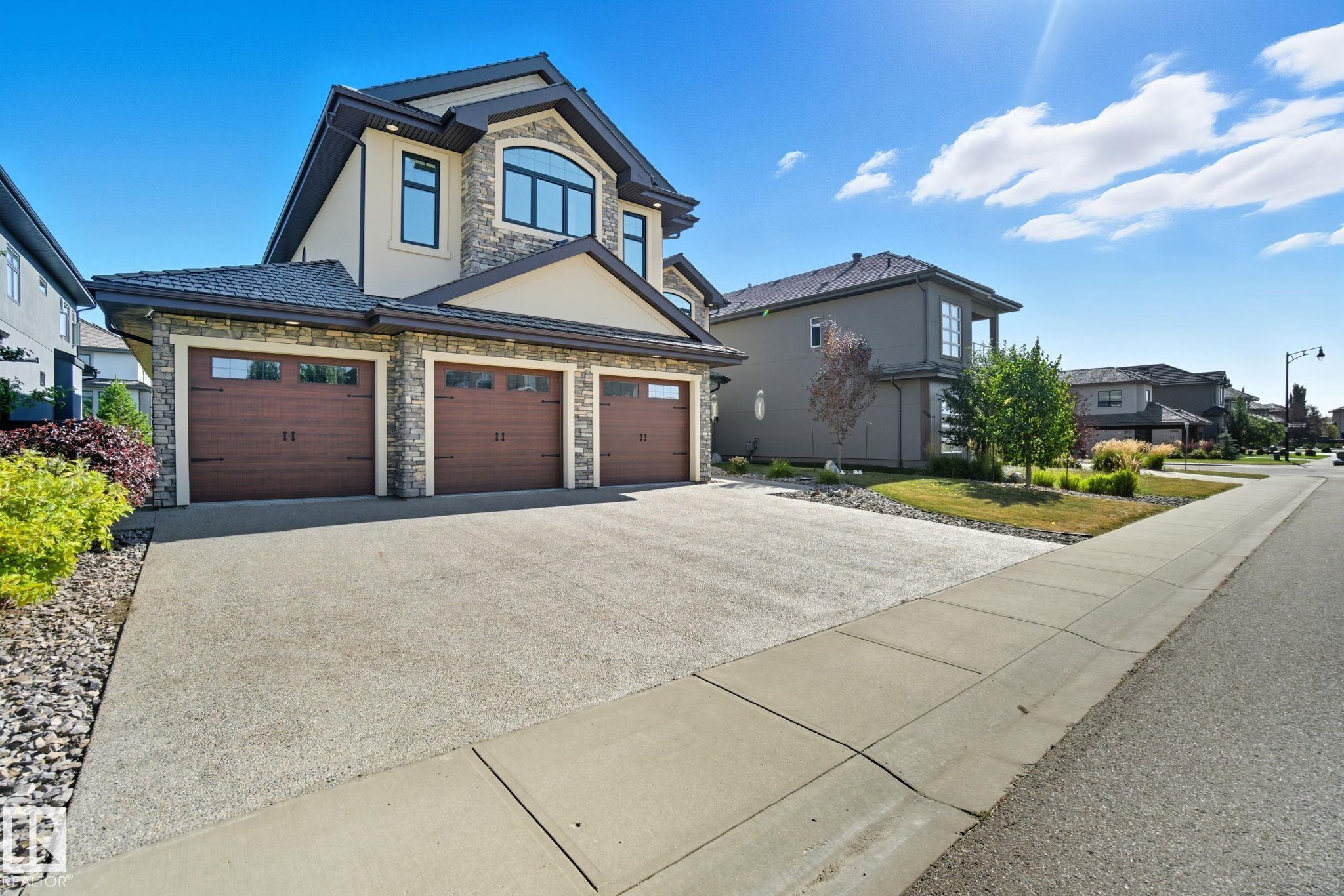 Welcome to this exceptional home offering over 6000 sq ft total living space with a rare blend of luxury, function, and style. The triple tandem garage WITH 8' DOORS, FLOOR DRAINS, GAS LINE & CAR CHARGER easily accommodates up to four vehicles. Inside, you are greeted with soaring ceilings, a dramatic CATWALK, and a formal dining room perfect for entertaining WITH BUILT IN SPEAKERS. The 10' main floor also features a spacious bedroom with ensuite connection, while in the 9' upstairs you’ll find a JACK & JILL bathroom and vaulted ceilings that create a grand feel throughout. The great room and primary suite feature stunning double-sided gas fireplaces. The 9' basement is designed for both fun and relaxation, complete with a DANCE STUDIO/MOVIE ROOM, WET BAR, and private SAUNA retreat with IN FLOOR HEAT. WATER PURIFICATION INCL. With west-facing front exposure and an east-facing backyard, natural light flows beautifully from morning to evening. This home truly combines elegance with everyday comfort.