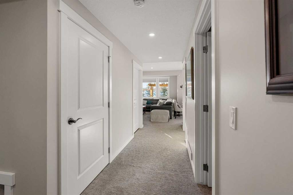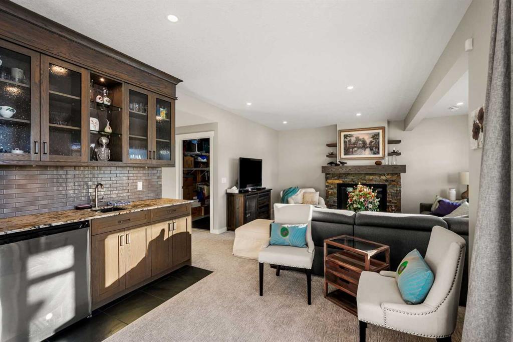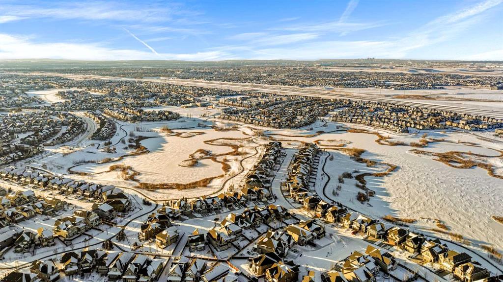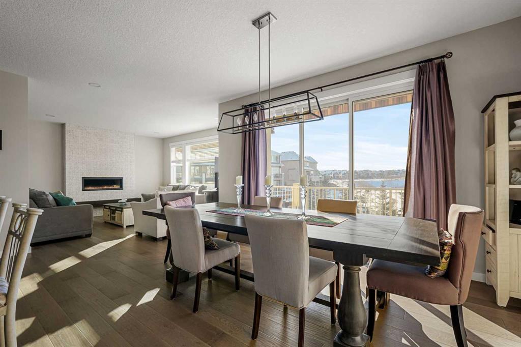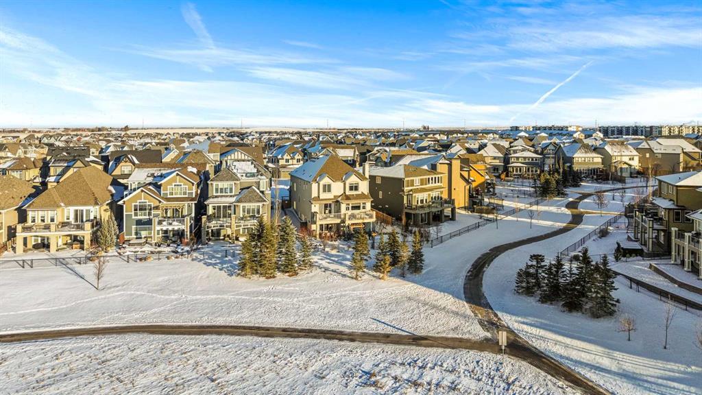 Beautiful LIKE NEW home in the Lake Community of Mahogany on a cul-de-sac, siding and backing onto the wetlands. ORIGINAL OWNERS have kept the home immaculate, showcasing substantial upgrading throughout. ONLY A TWELVE MINUTE WALK TO THE BEACH CLUB, This home is nearby fields, parks, scenic pathways, natural wetlands and within walking distance to the Elementary School! This Walk Out home features an open concept main floor with 9-foot ceilings on all 3 floors and plenty of triple glazed windows across the back so you can enjoy the views. Beautiful hardwood and tile floors flow throughout the main level. The kitchen comes with stylish cabinetry, bright backsplash tile, built-in stainless steel kitchen appliances, upgraded five burner gas cooktop and features beautiful upgraded granite counters on the island. A custom bespoke Butlers Pantry to match the main kitchen, also with an upgraded granite counter, offers additional elegance and storage. The full-width rear deck is complete with a gas line for summer BBQ's and features custom rear awnings for enjoying the tranquil wetland views on a hot summer day. Upstairs, the master suite with spacious ensuite is a true retreat - complete with unobstructed views. This home also features 3 extra bedrooms, a central bonus room, and a fully finished upper floor laundry room. The 8-foot doors upstairs keep the grand proportions flowing. The Walk Out Basement has been professionally developed with permit and is an absolute delight. The family room features large, wetland-facing windows and a beautiful fireplace that would be right at home in a Banff lodge. A custom Oak Wetbar features an exotic leathered granite counter and a perfect space for a work out corner or card table that steps out onto the covered lower patio, which features a second gas line connection. The basement also includes a large guest room and a stunning, top-of-the-line washroom with a fully tiled bath surround a nice deep tub, a quartz ledge, and a stunning custom vanity cabinet. Additional high-end features include a 3-Zone furnace and air conditioning system that allows optimal control of heating and cooling throughout, a Built-in Vacuum System, and a Water Softener at service for delicious tap water, soft skin, and smooth hair. The rear yard has been meticulously designed and professionally landscaped with fruit trees, ornamental trees, low shrubs, perennials, and bulbs, completing this absolutely delightful home.