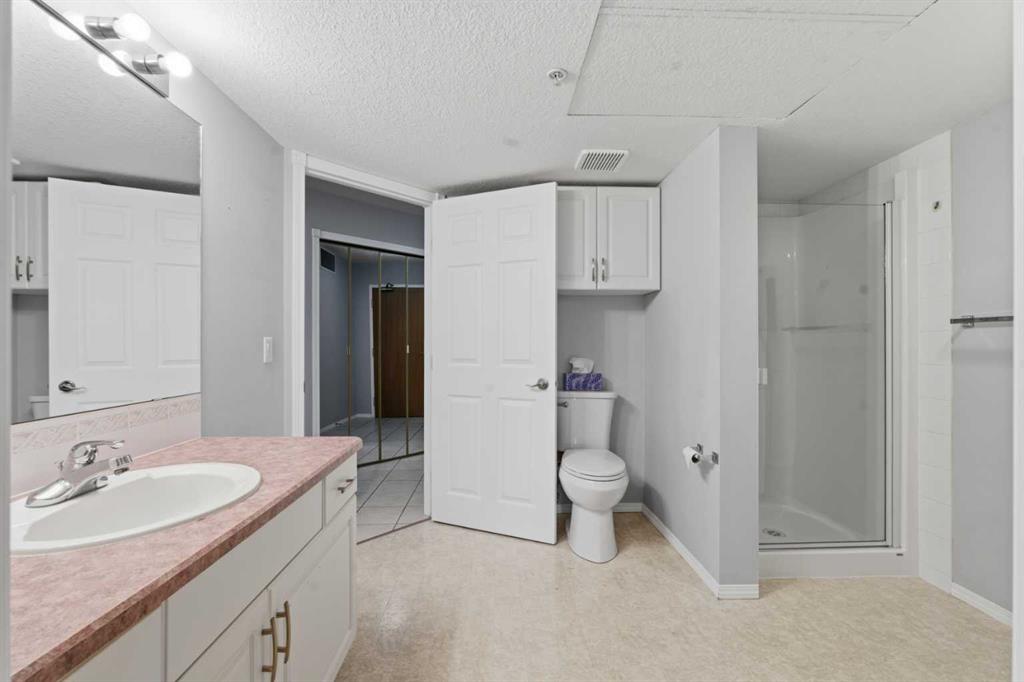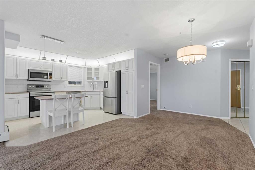 END UNIT | 55+ BUILDING WITH POOL, HOT TUB, WORKSHOP, CAR WASH & MORE | 2 BEDROOMS & 2 FULL BATHS | CENTRAL AIR CONDITIONING | 2 UNDERGROUND PARKING STALLS | QUICK POSSESSION AVAILABLE This beautifully maintained corner unit combines exceptional natural light, generous indoor living and the comfort of an active adult building known for outstanding amenities. A bright open floor plan creates effortless flow with defined spaces for dining, relaxing and entertaining. Large windows and extra corner exposure enhance the inviting living room anchored by a gas fireplace for cozy evenings. The neutral white kitchen provides extensive cabinet and counter space, stainless steel appliances and a centre island with seating for casual meals. Sliding doors off the living room and a second access point from the kitchen connect to the glass-enclosed deck for year-round enjoyment, indoor/outdoor lifestyle and views over the community. Both bedrooms are thoughtfully separated for privacy and functional living. Retreat to the spacious primary bedroom featuring a large walk-in closet and private 4-piece ensuite. The second bedroom boasts cheater access to a 3-piece bathroom, ideal for guests or flexible use as a den or hobby room. In-suite laundry adds daily convenience. Central air conditioning ensures comfort throughout warmer months. Two secure underground parking stalls and an assigned storage locker keep everything organized and protected. This popular 55+ complex is exceptionally well-equipped, offering a full list of incredible amenities including an indoor pool, hot tub, fitness center, library, games room with billiards, party room for gatherings, rentable guest suites, a workshop, plus 15 access to Heritage Square building, a car wash bay and so much more. The location in established Acadia places every lifestyle need within easy reach. Transit and major routes provide an efficient commute anywhere in the city, including downtown. A rare combination of size, sunlight, amenities and convenience within a welcoming adult-oriented community. Vacant and move-in ready!